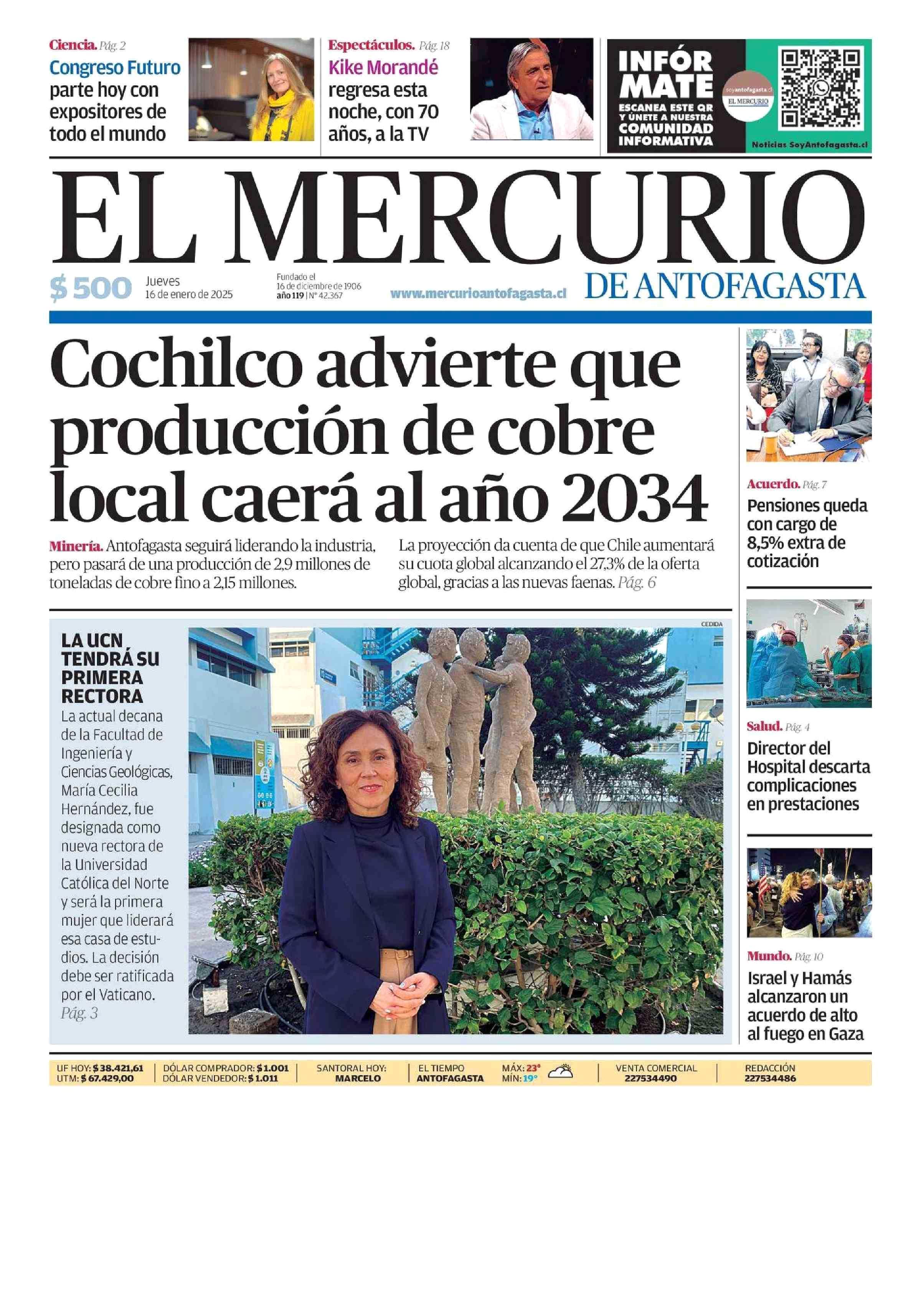 PORTADA EL MERCURIO DE ANTOFAGASTA CHILE 16-01-2025 El Mercurio de Antofagasta |