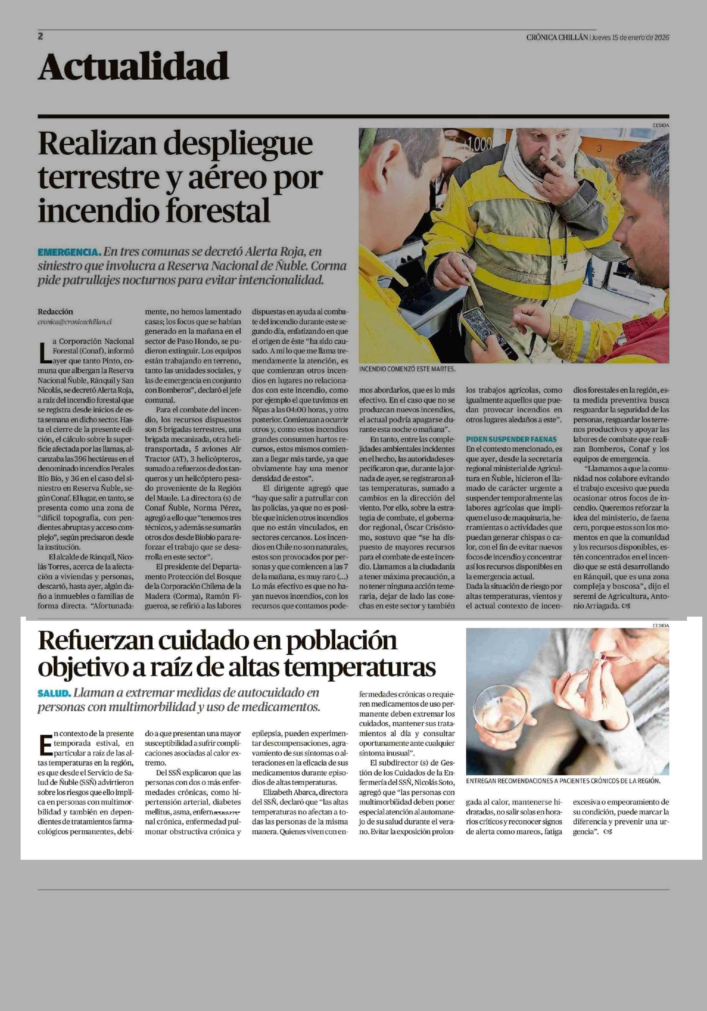 Refuerzan cuidado en población objetivo a raíz de altas temperaturas 15-01-2026 Crónica de Chillán |