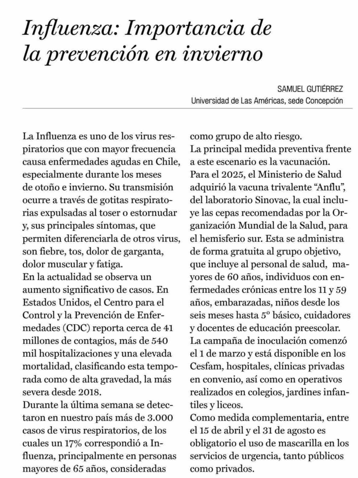 CARTAS: Influenza: Importancia de la prevención en invierno 23-05-2025 La Prensa de Curicó |