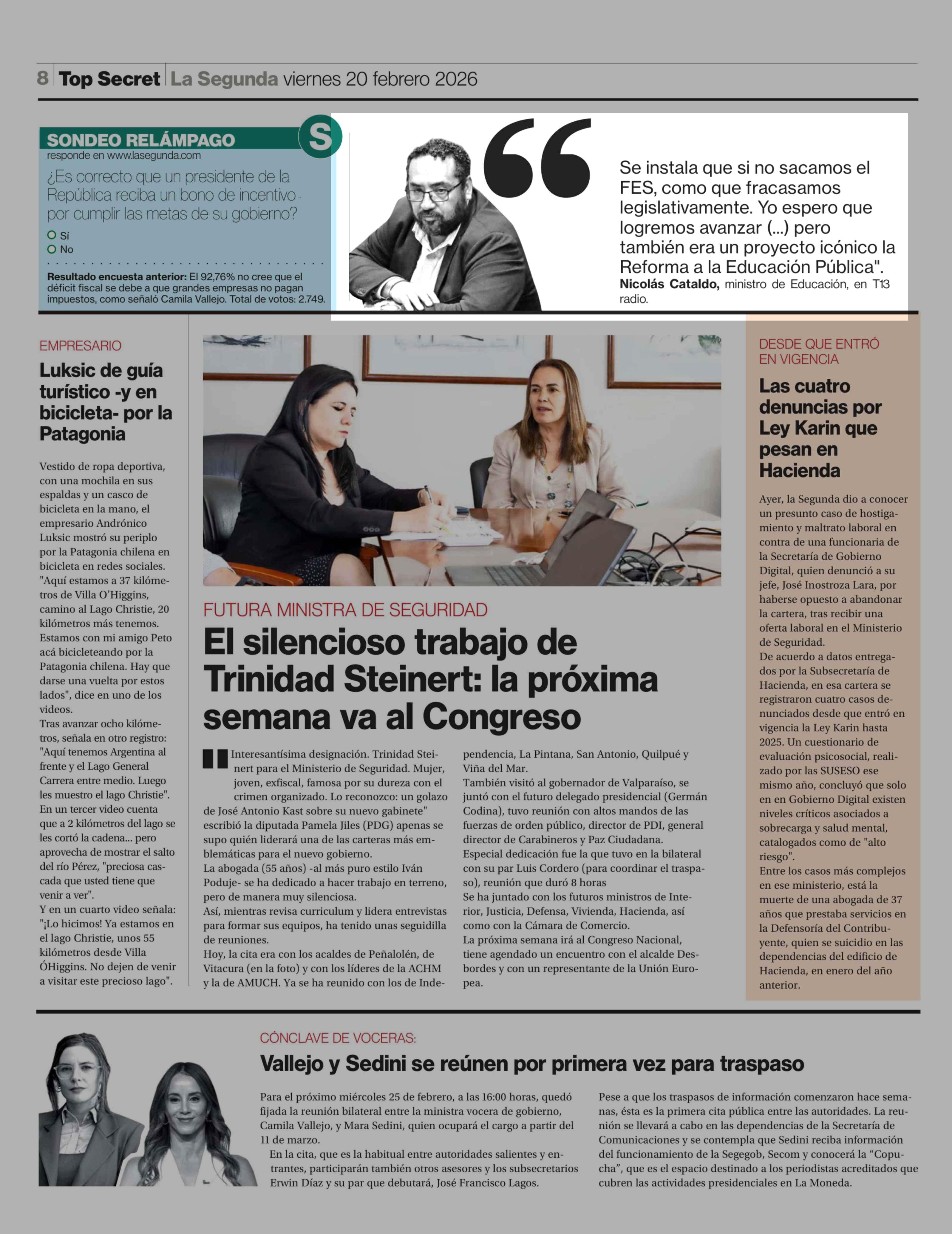 Nicolás Cataldo, ministro de Educación, en T13 radio. 20-02-2026 La Segunda |