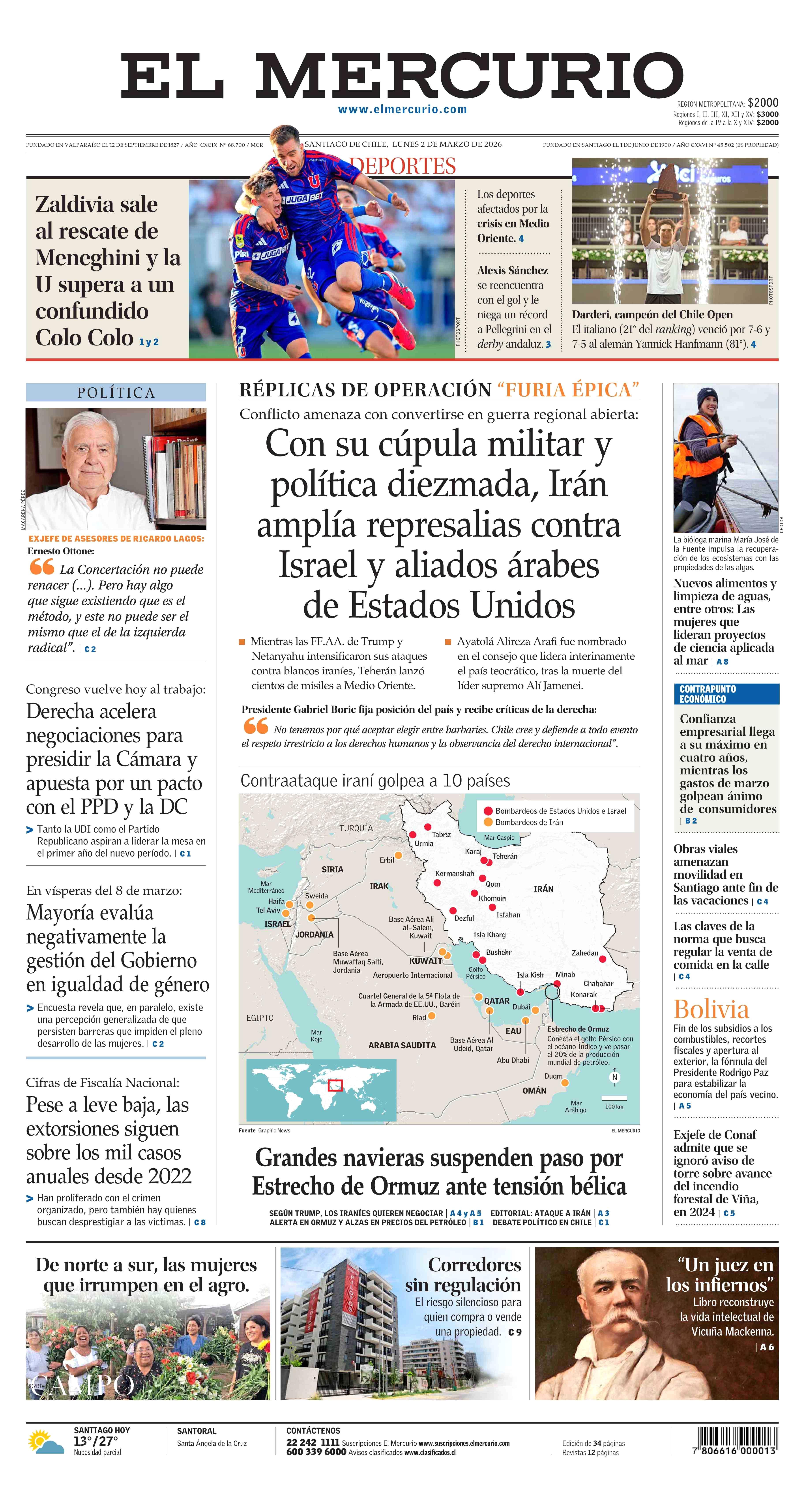 Fecha: 02-03-2026 Sector: Portada Región: Región Metropolitana de Santiago