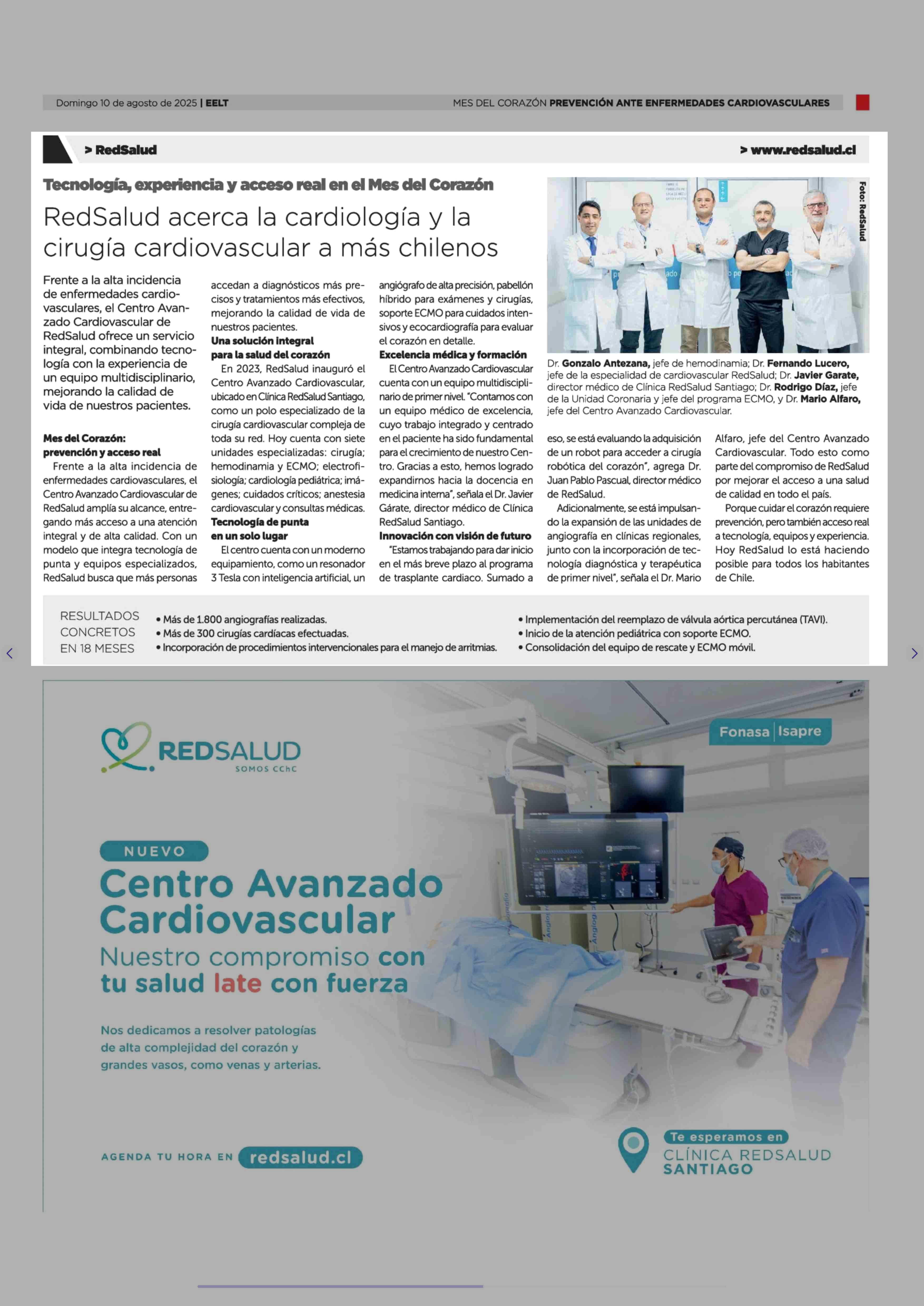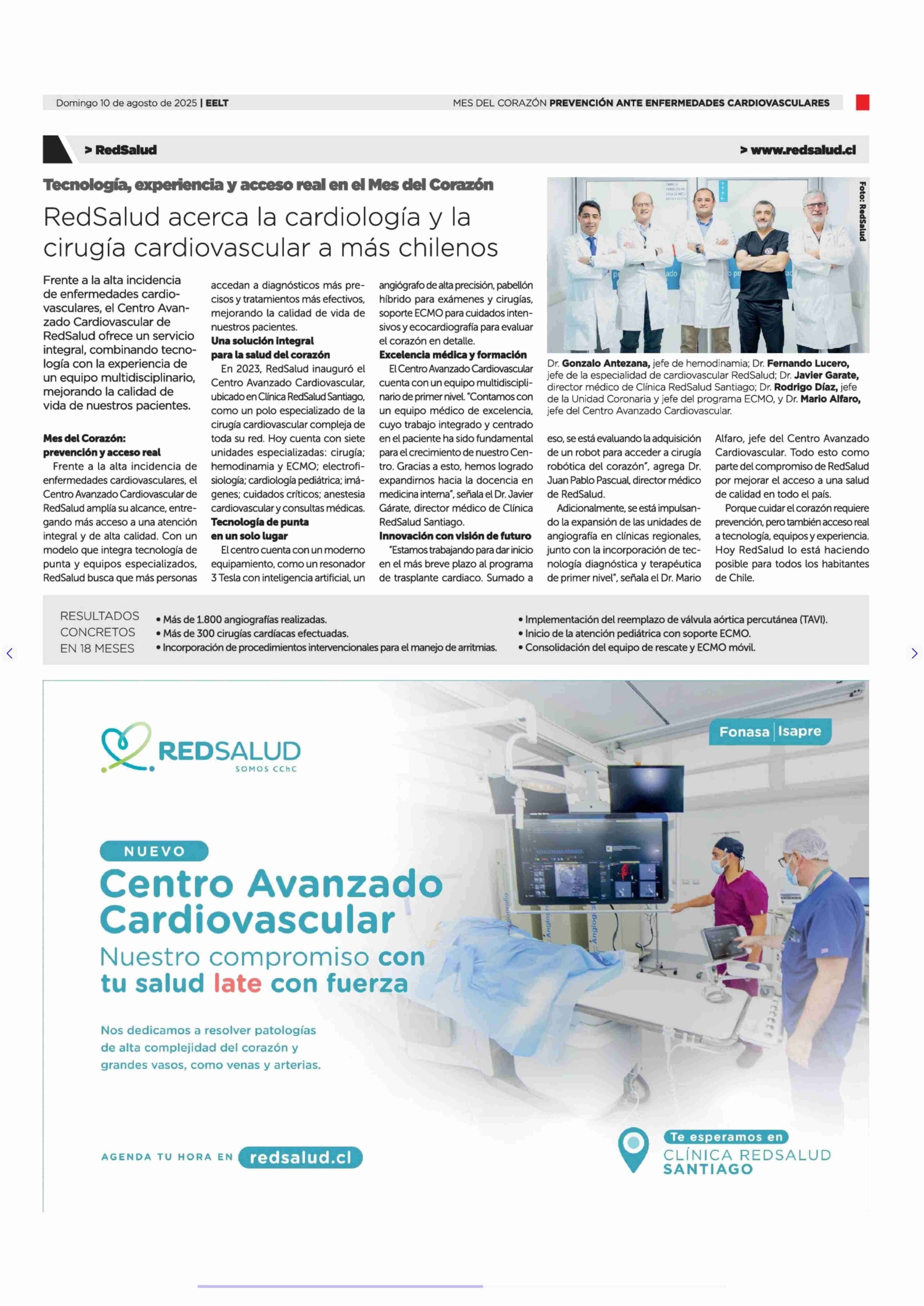 RedSalud acerca la cardiología y la cirugía cardiovascular a más chilenos 10-08-2025 La Tercera |