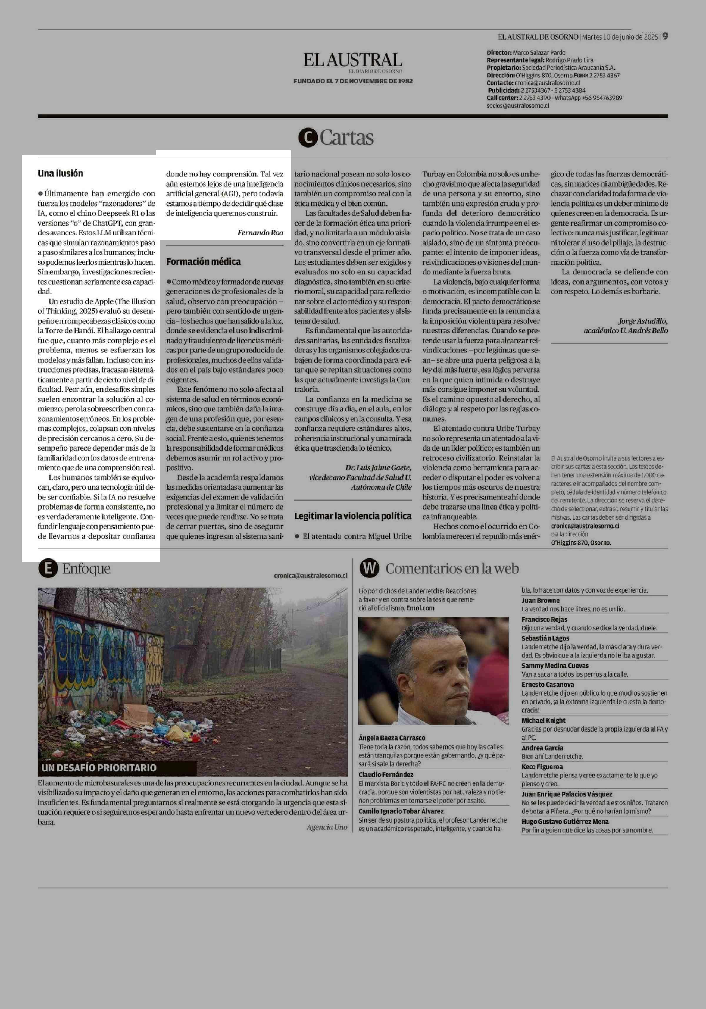 CARTAS: Una ilusión 10-06-2025 El Austral de Osorno |