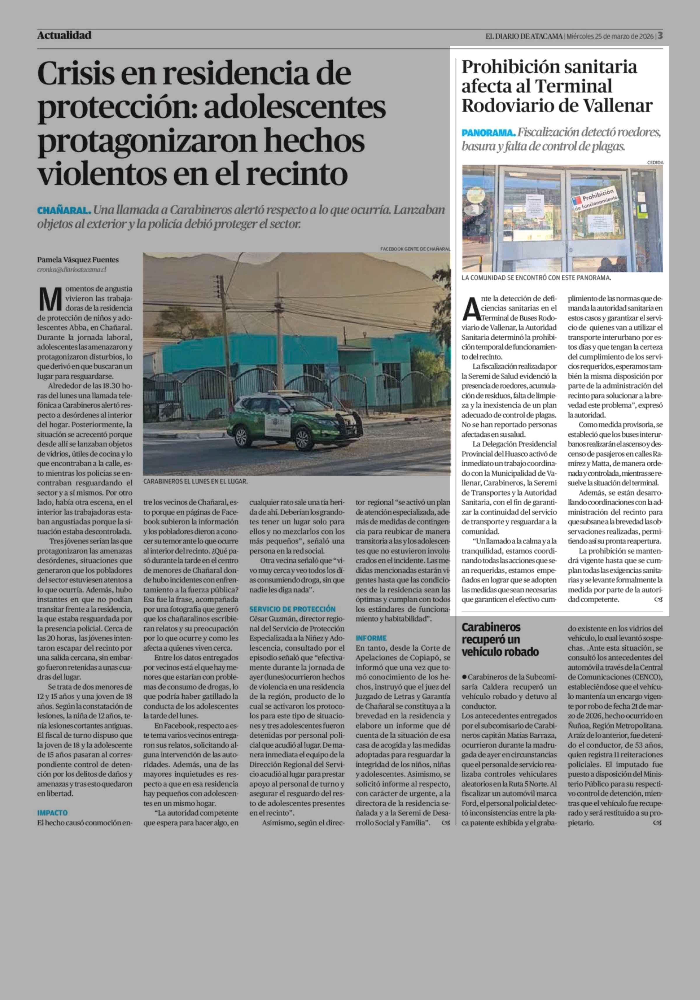 Prohibición sanitaria afecta al Terminal Rodoviario de Vallenar 25-03-2026 El Diario de Atacama |