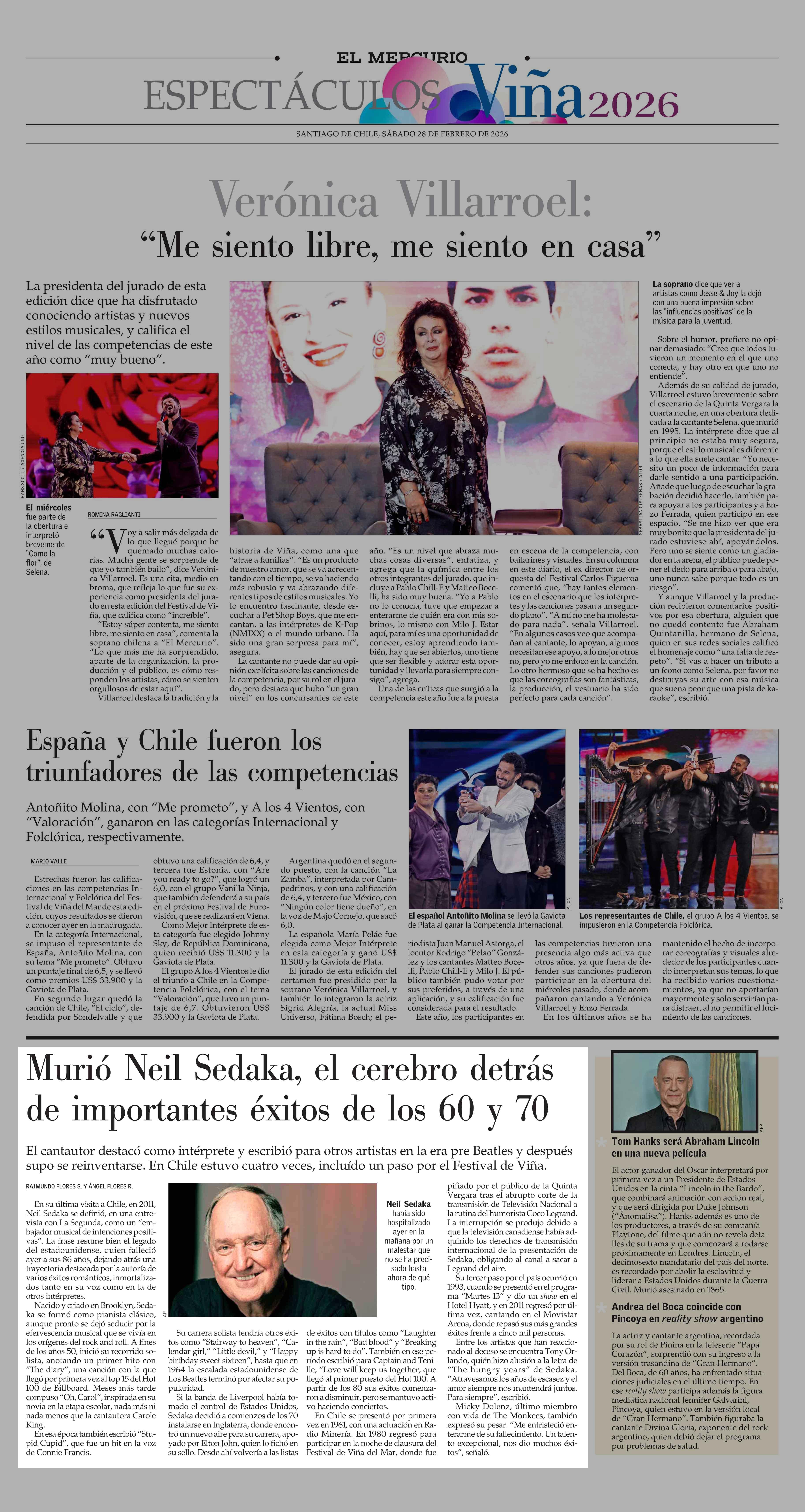 Murió Neil Sedaka, el cerebro detrás de importantes éxitos de los 60 y 70 28-02-2026 El Mercurio |