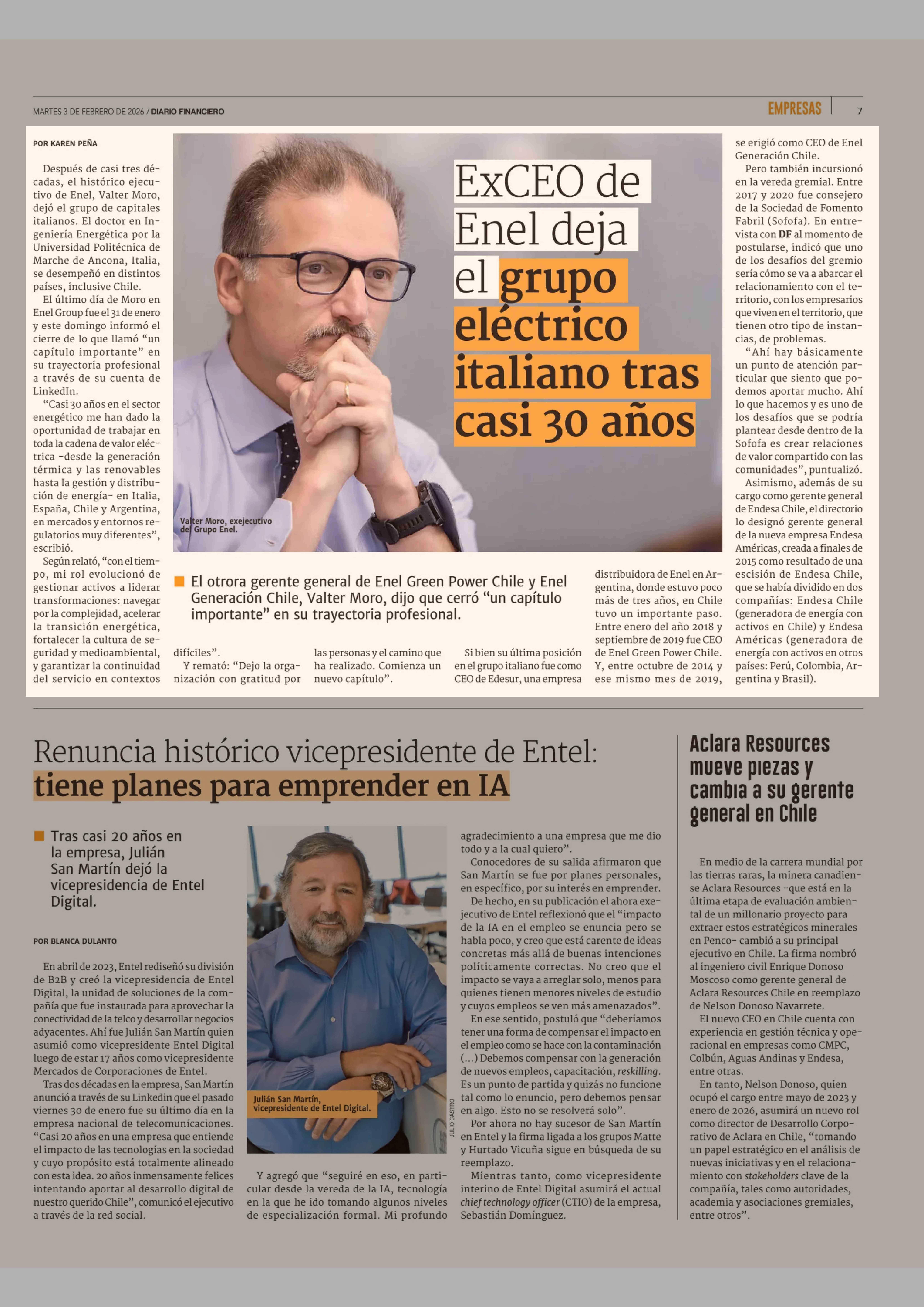 ExCEO de Enel deja el grupo eléctrico italiano tras casi 30 años 03-02-2026 Diario Financiero |