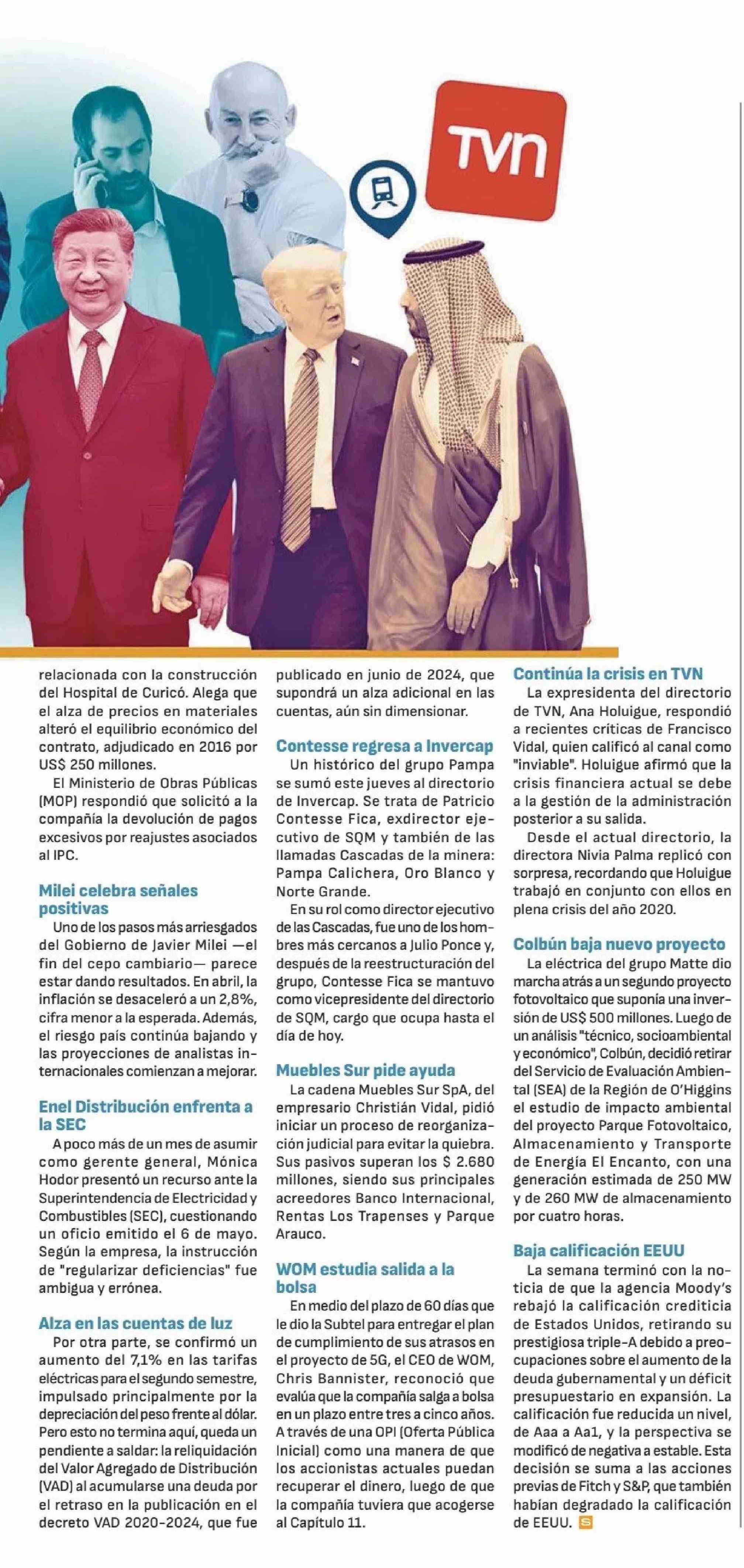 Acuerdo EEUU-China, informe del CFA y encuentro Borie con Xi Jinping marcaron la agenda 17-05-2025 Diario Financiero |