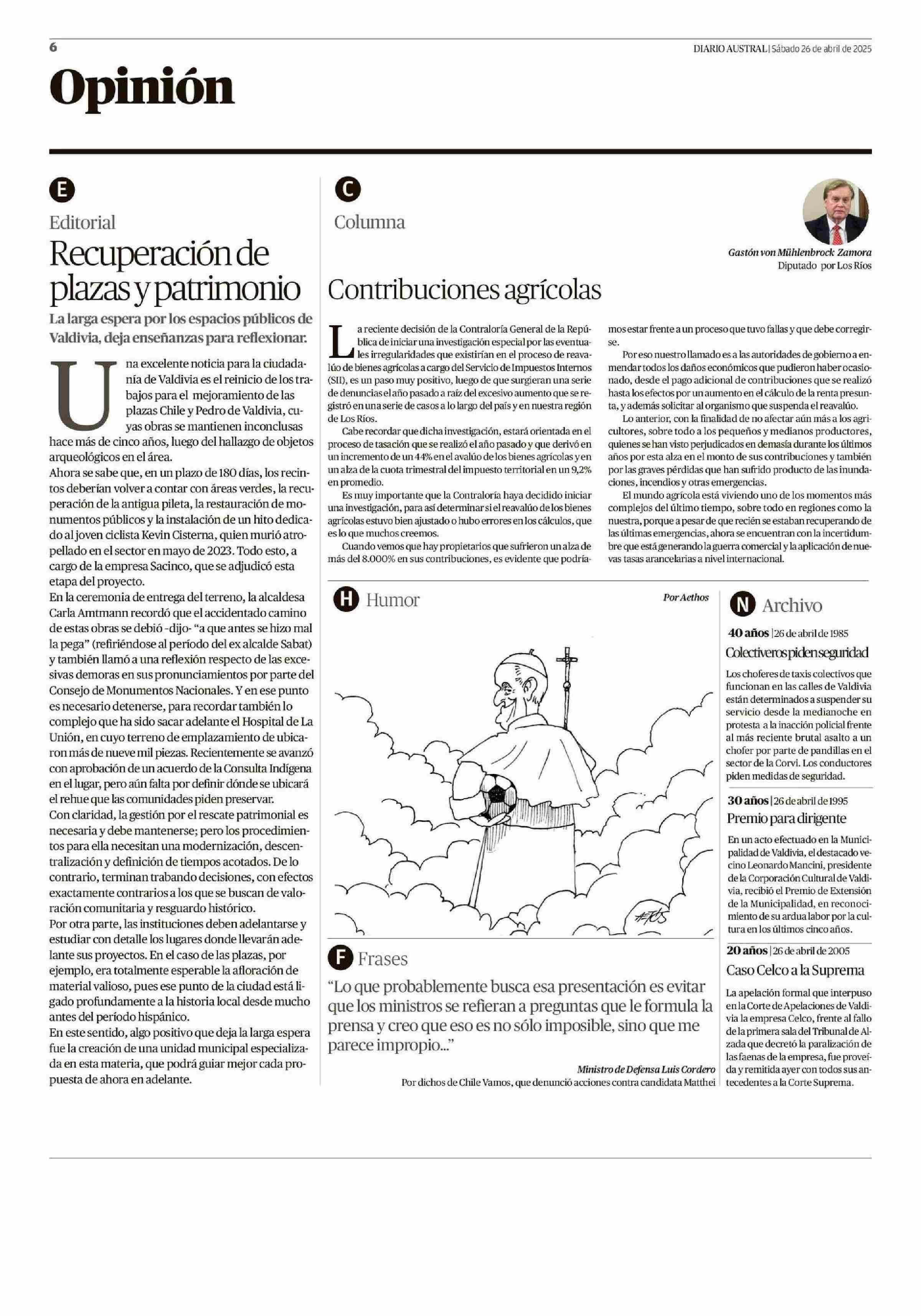 | Fecha: | 26-04-2025 | Sector: | Columnas de Opinión | Región: | Región de Los Ríos |