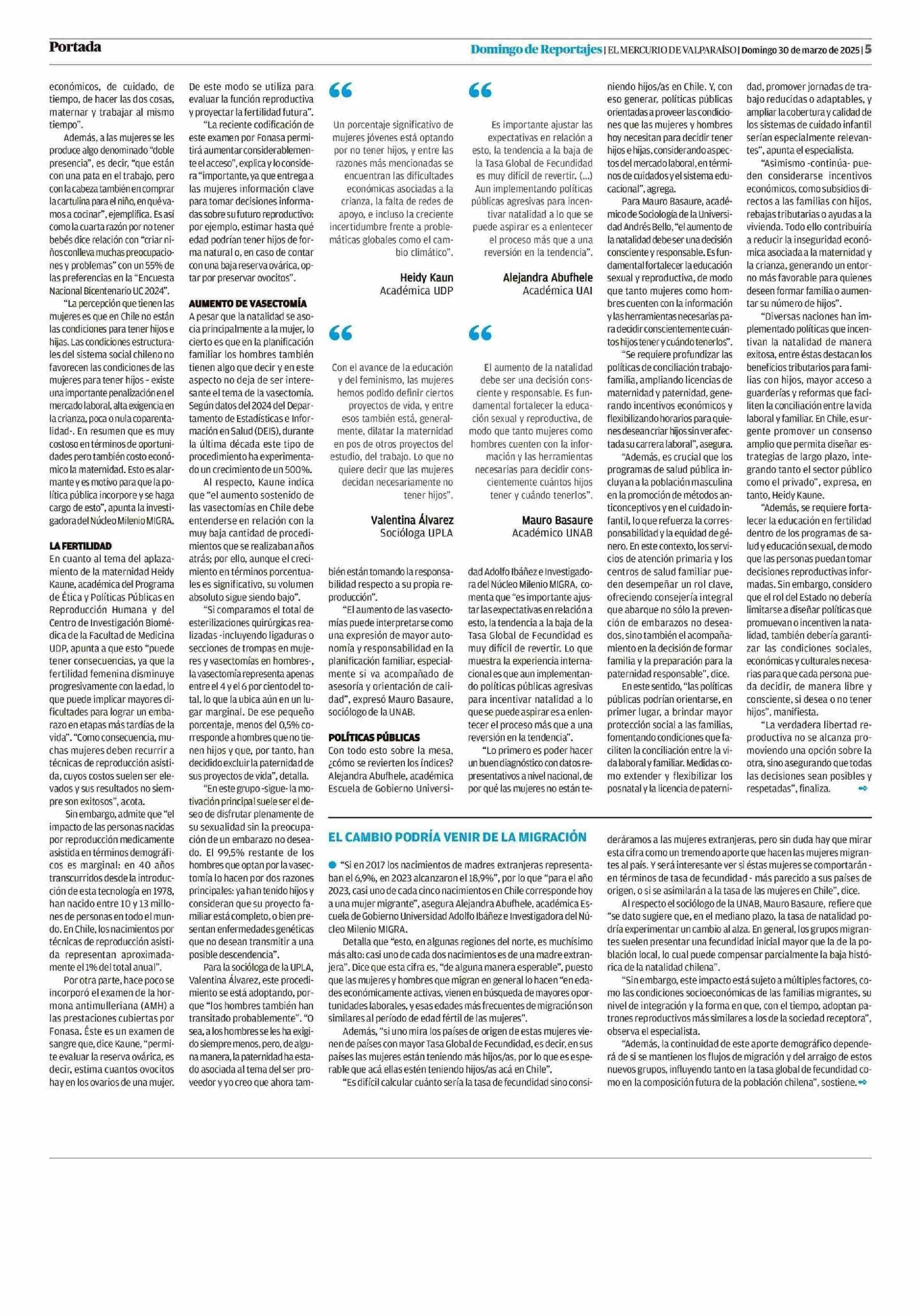 Crisis de natalidad: el fenómeno que a futuro puede provocar graves consecuencias al pals 30-03-2025 El Mercurio de Valparaíso |