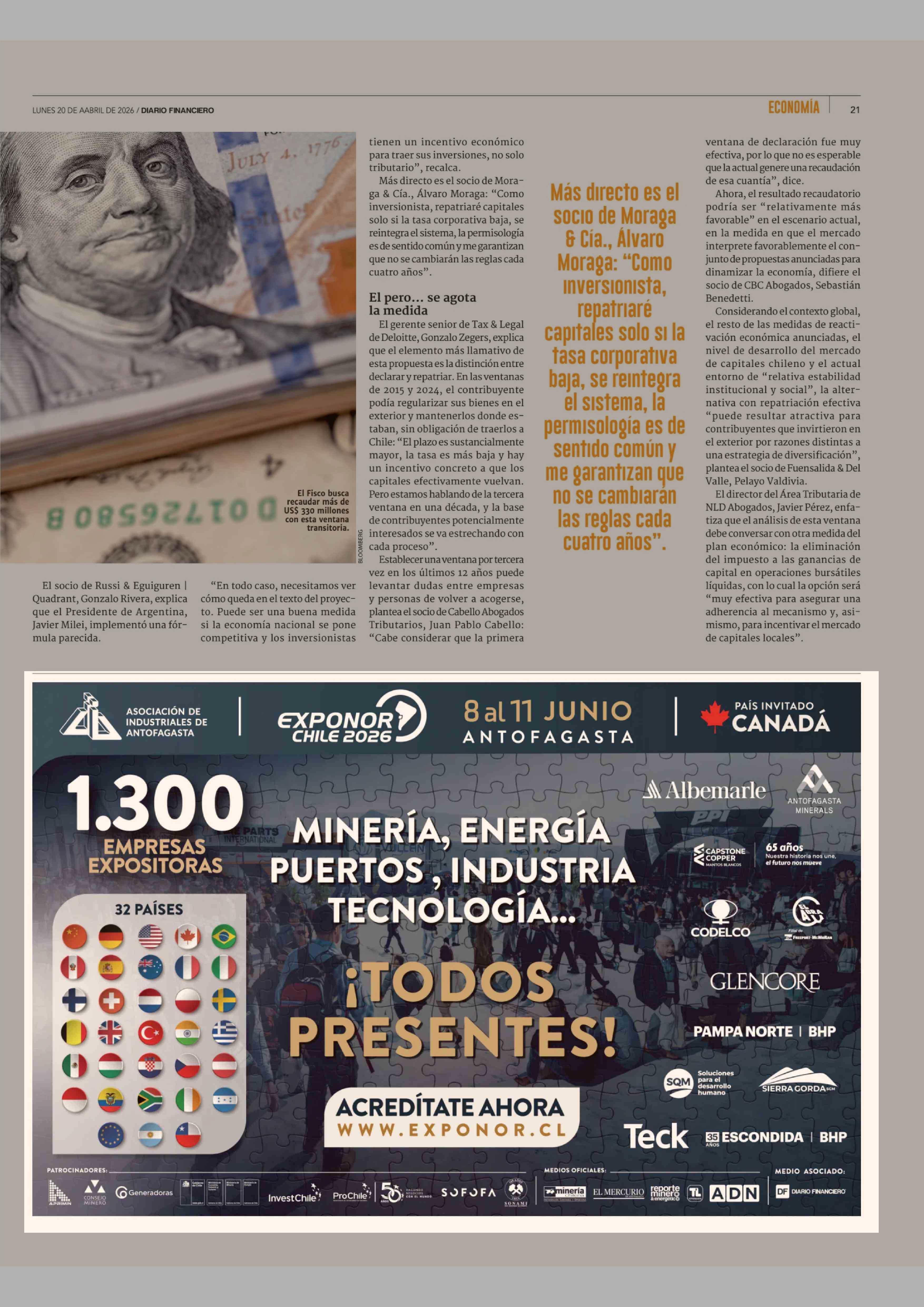 Fuente: Diario Financiero (Diario Financiero) Página(s): 21