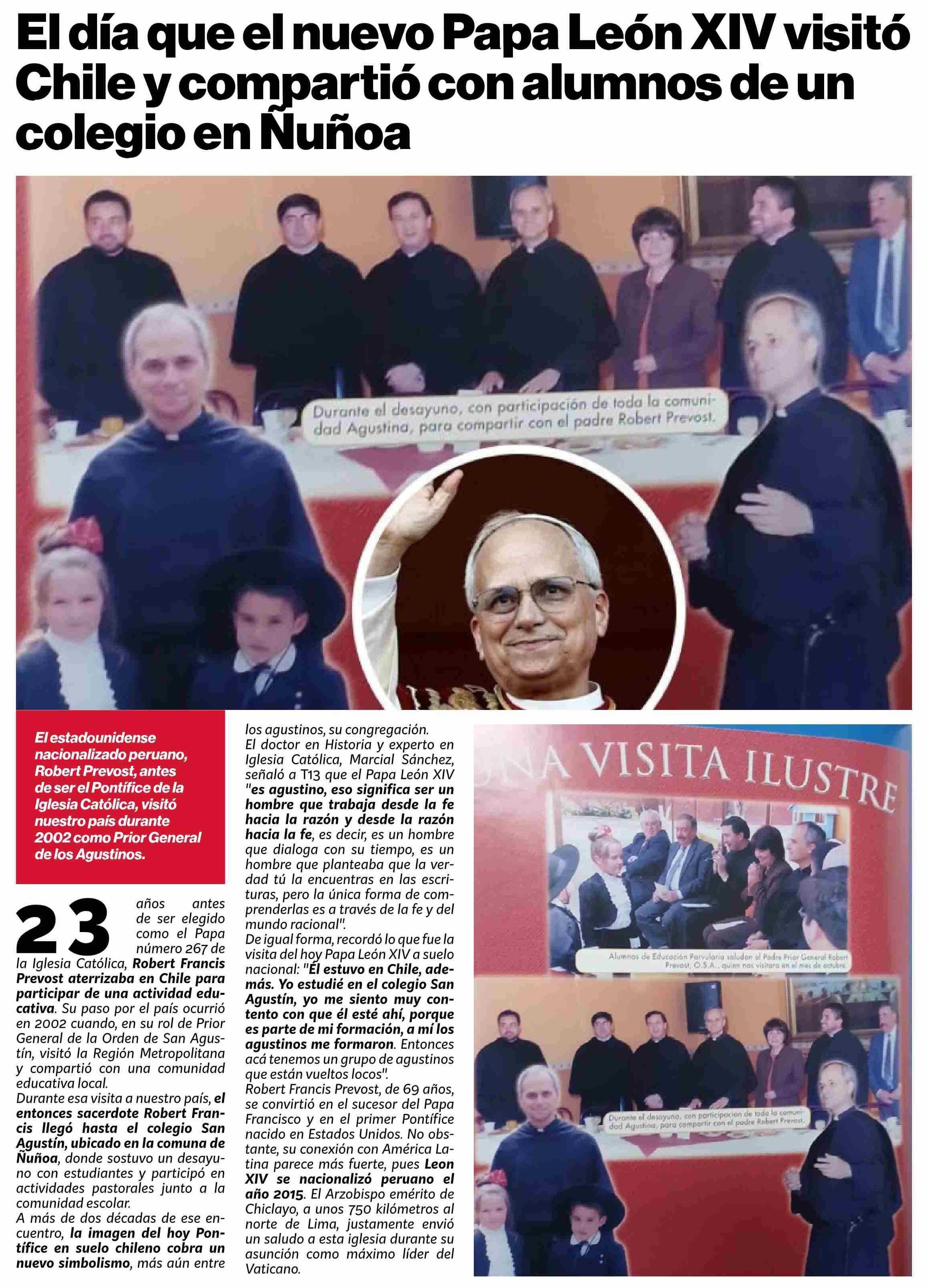 El día que el nuevo Papa León XIV visitó Chile y compartió con alumnos de un colegio en Nuñoa 08-05-2025 Puranoticia.cl |