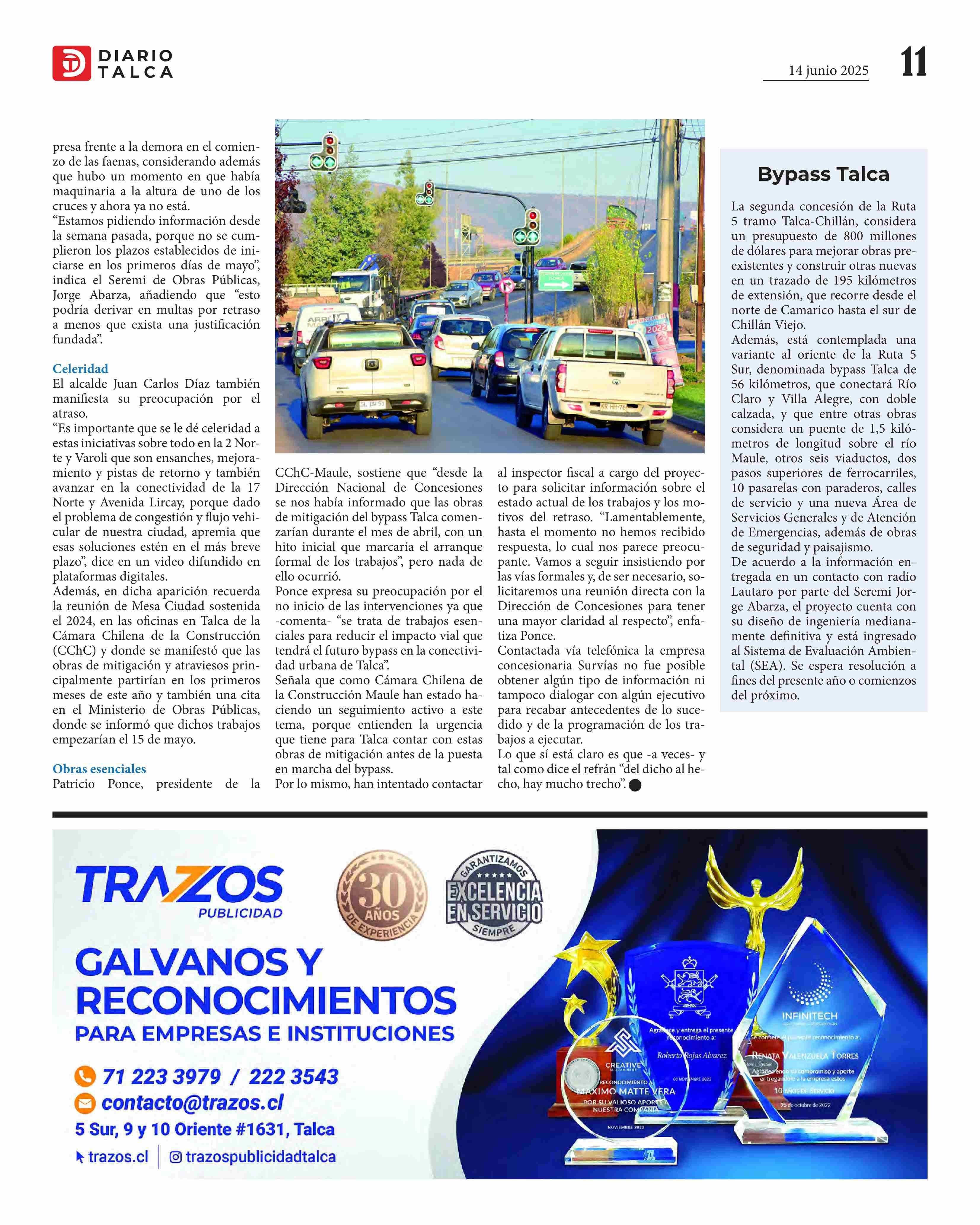 Mejoramiento de los enlaces en Talca sin inicio de obras ni explicación por el atraso 14-06-2025 Diario Talca |