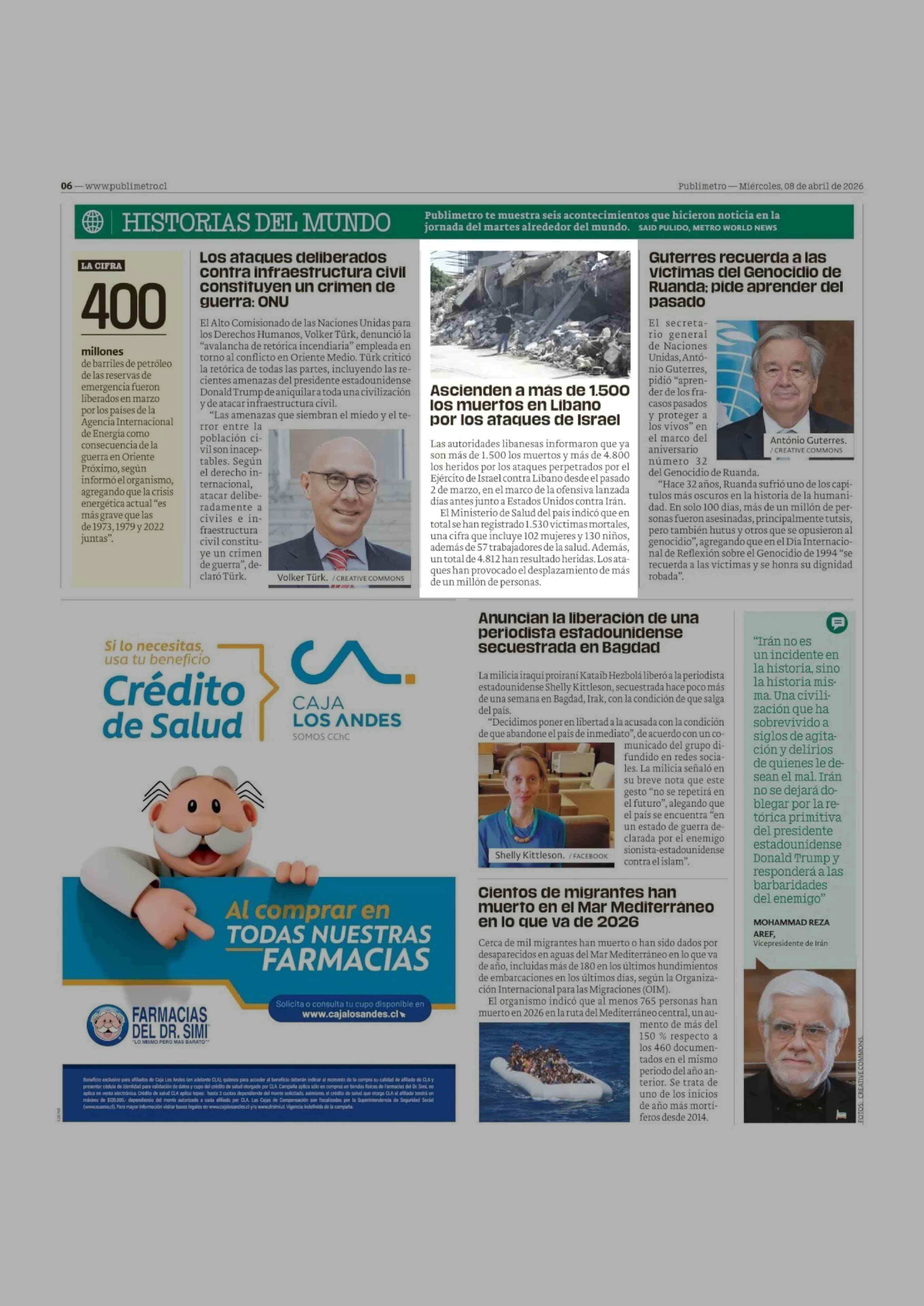 Ascienden a más de 1.500 los muertos en Libano por los ataques de Israel 08-04-2026 Publimetro |