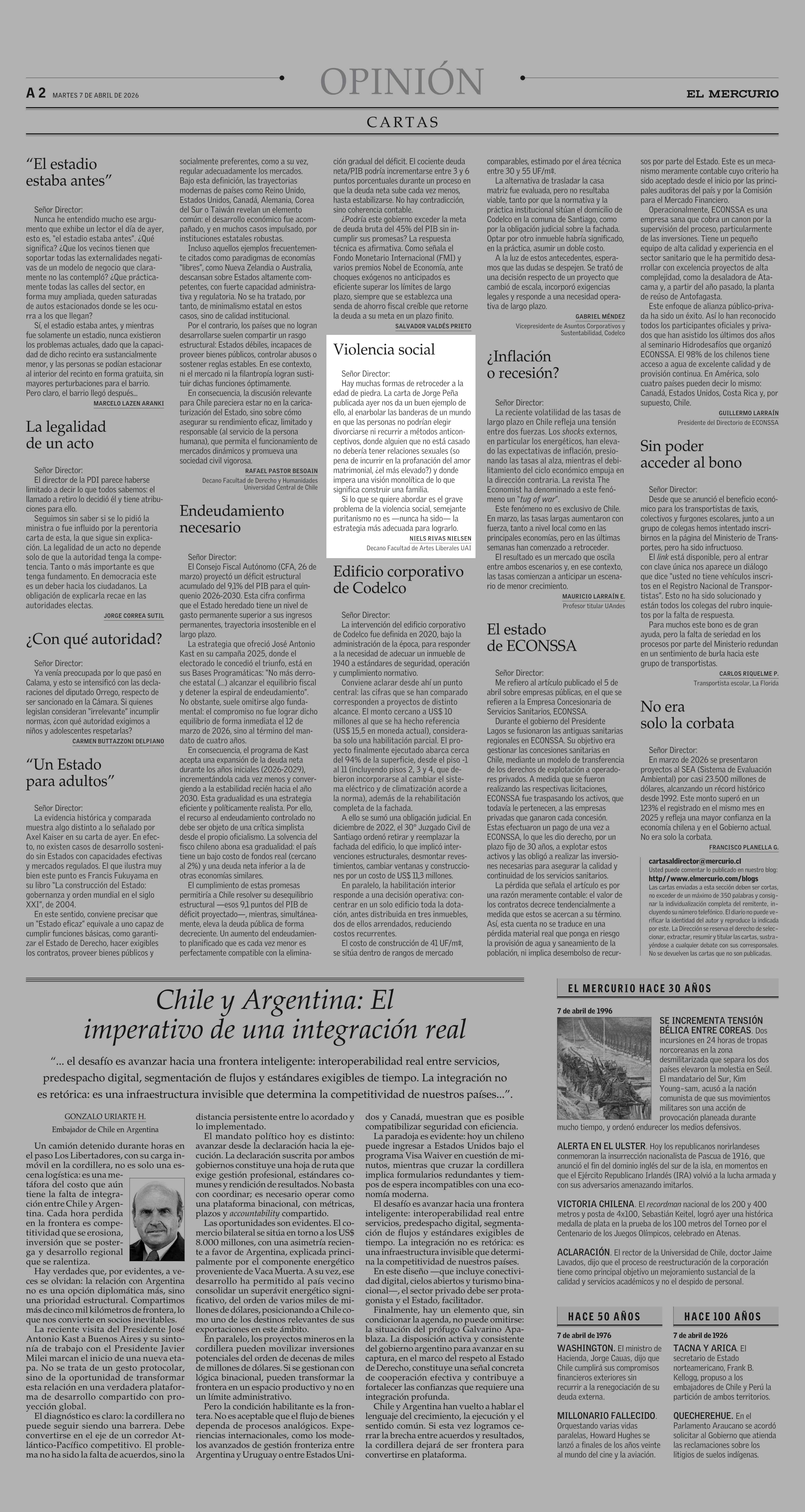 Cartas: Violencia social 07-04-2026 El Mercurio |