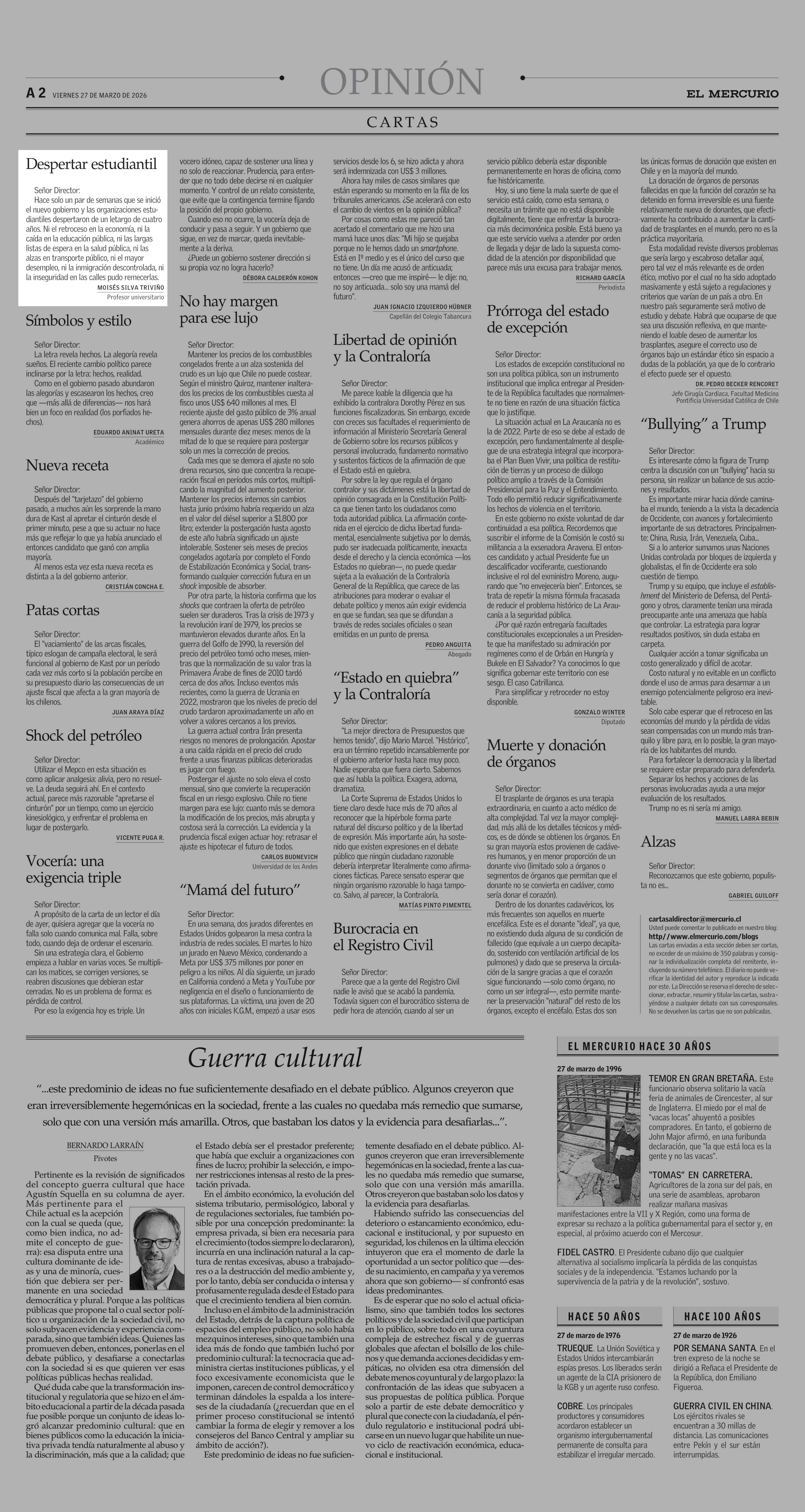 Cartas: Despertar estudiantil 27-03-2026 El Mercurio |