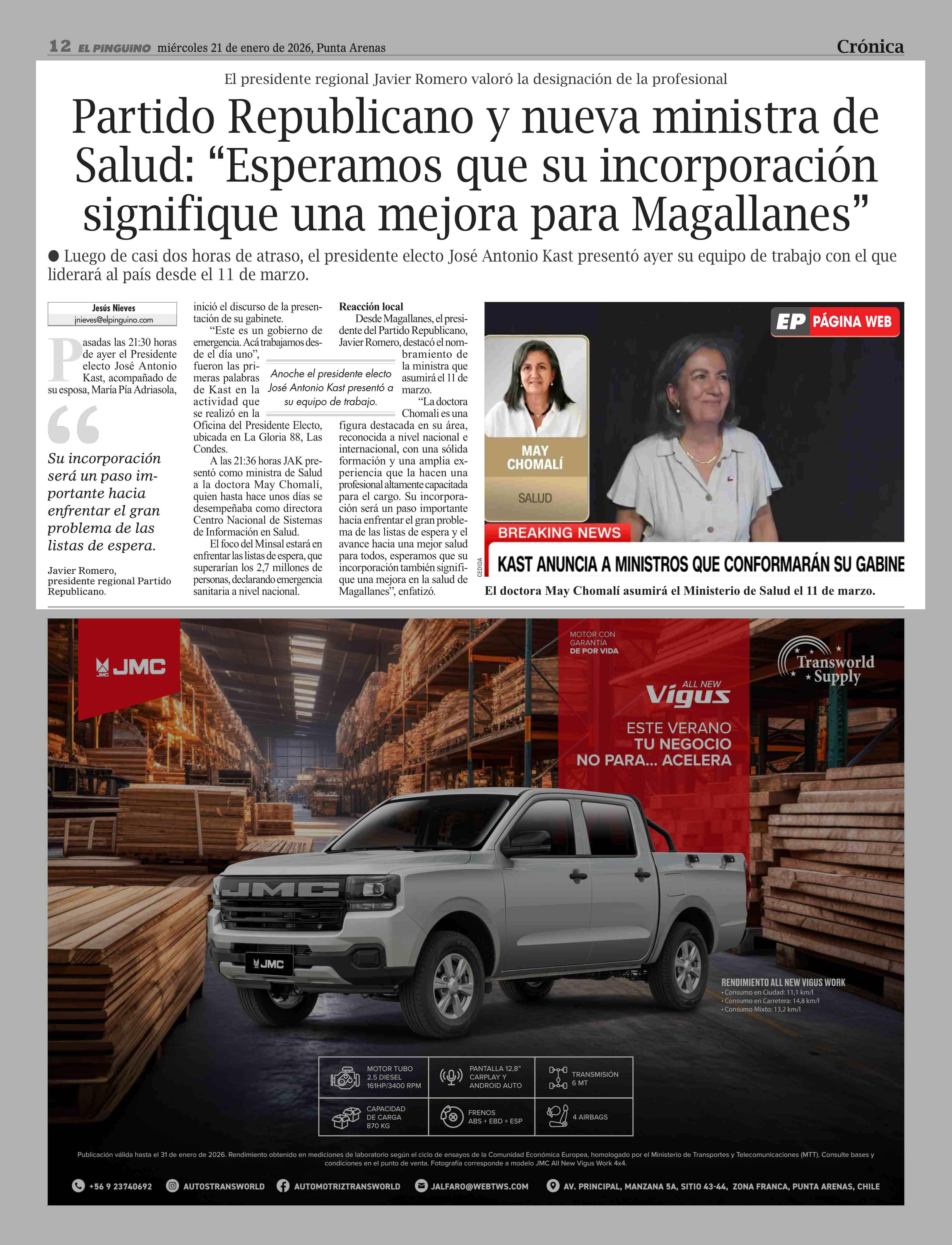 Título: Partido Republicano y nueva ministra de Salud: "Esperamos que su incorporación signifique una mejora para Magallanes"