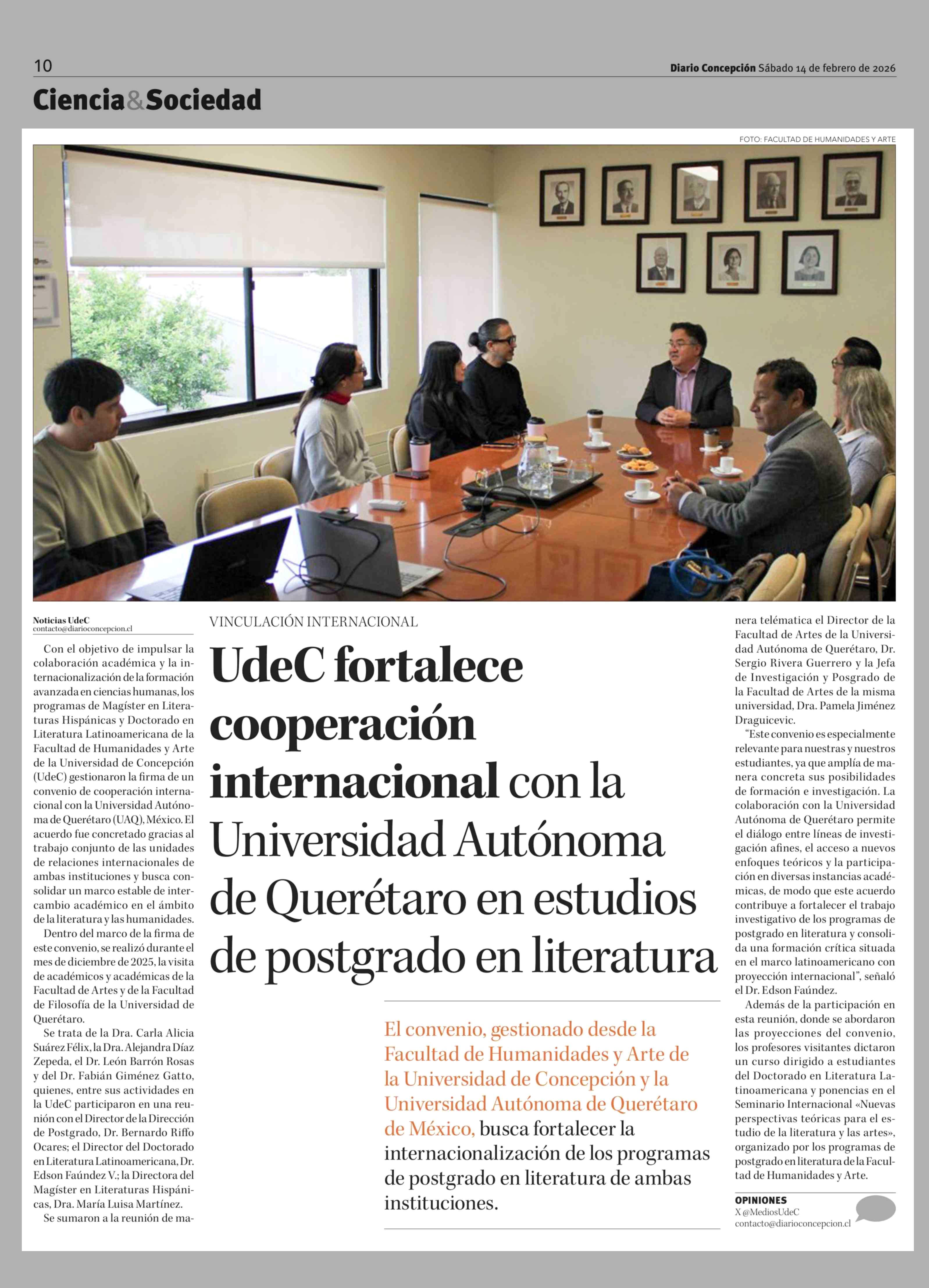UdeC fortalece cooperación internacional con la Universidad Autónoma de Querétaro en estudios de postgrado en literatura 14-02-2026 Diario Concepción |