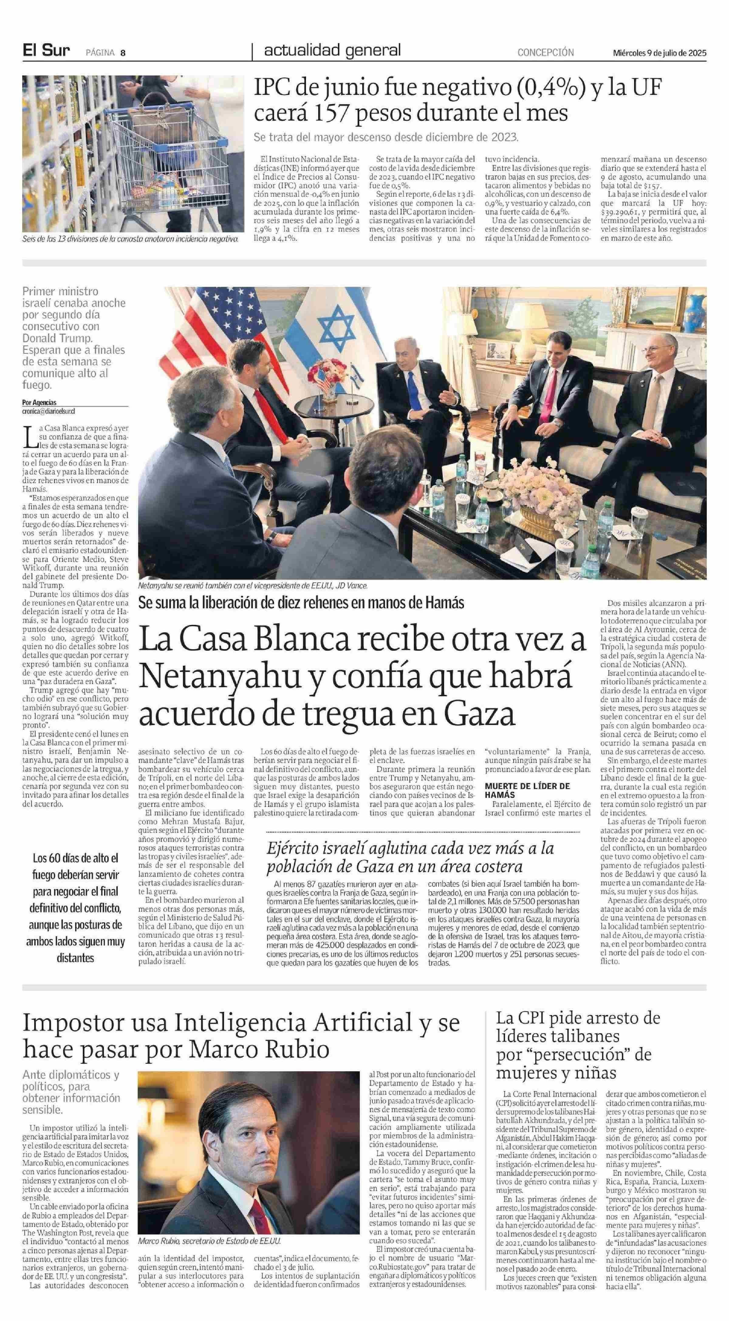 La Casa Blanca recibe otra vez a Netanyahu y confía que habrá acuerdo de tregua en Gaza 09-07-2025 El Sur |