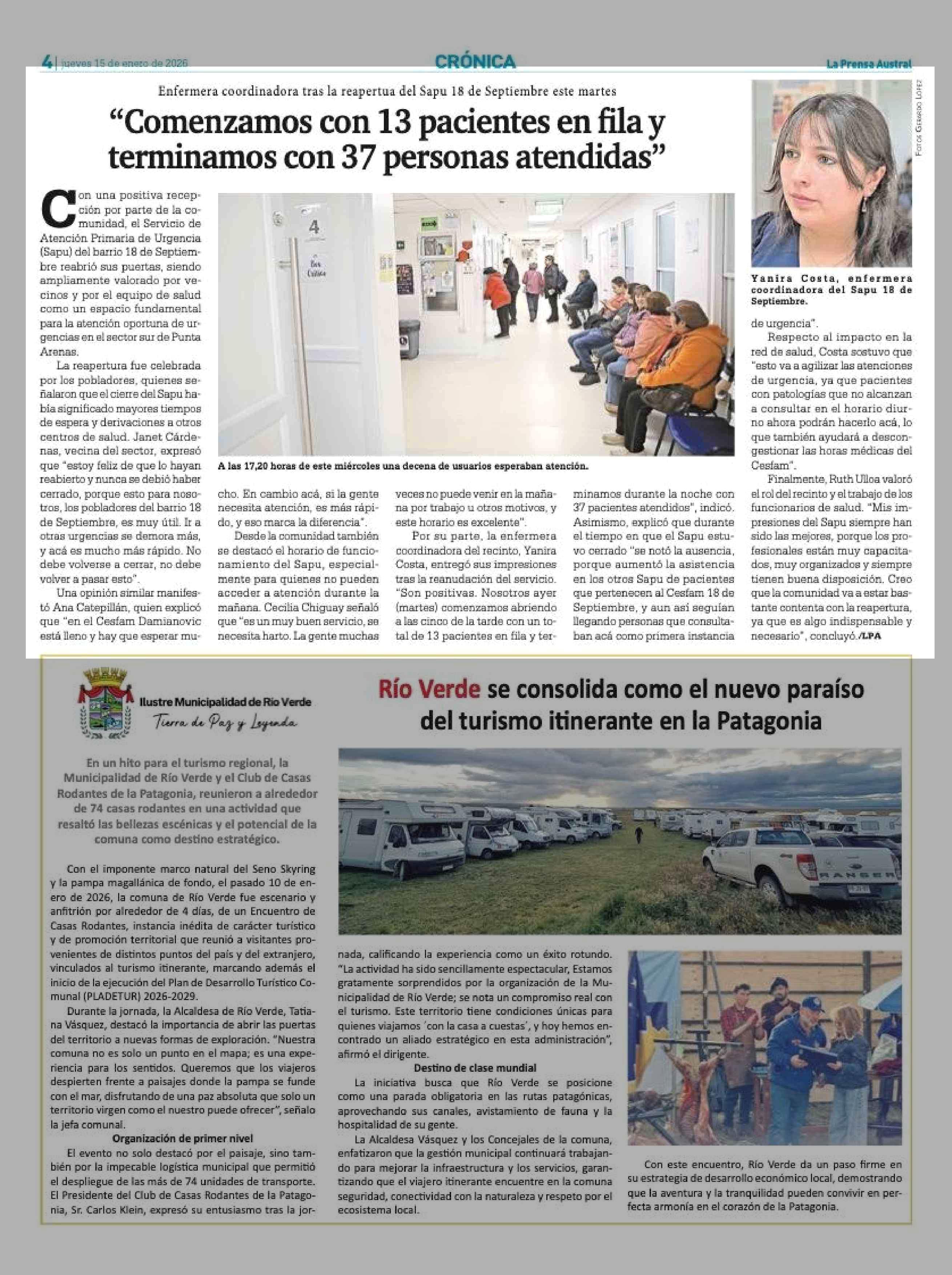 "Comenzamos con 13 pacientes en fila y terminamos con 37 personas atendidas" 15-01-2026 La Prensa Austral |