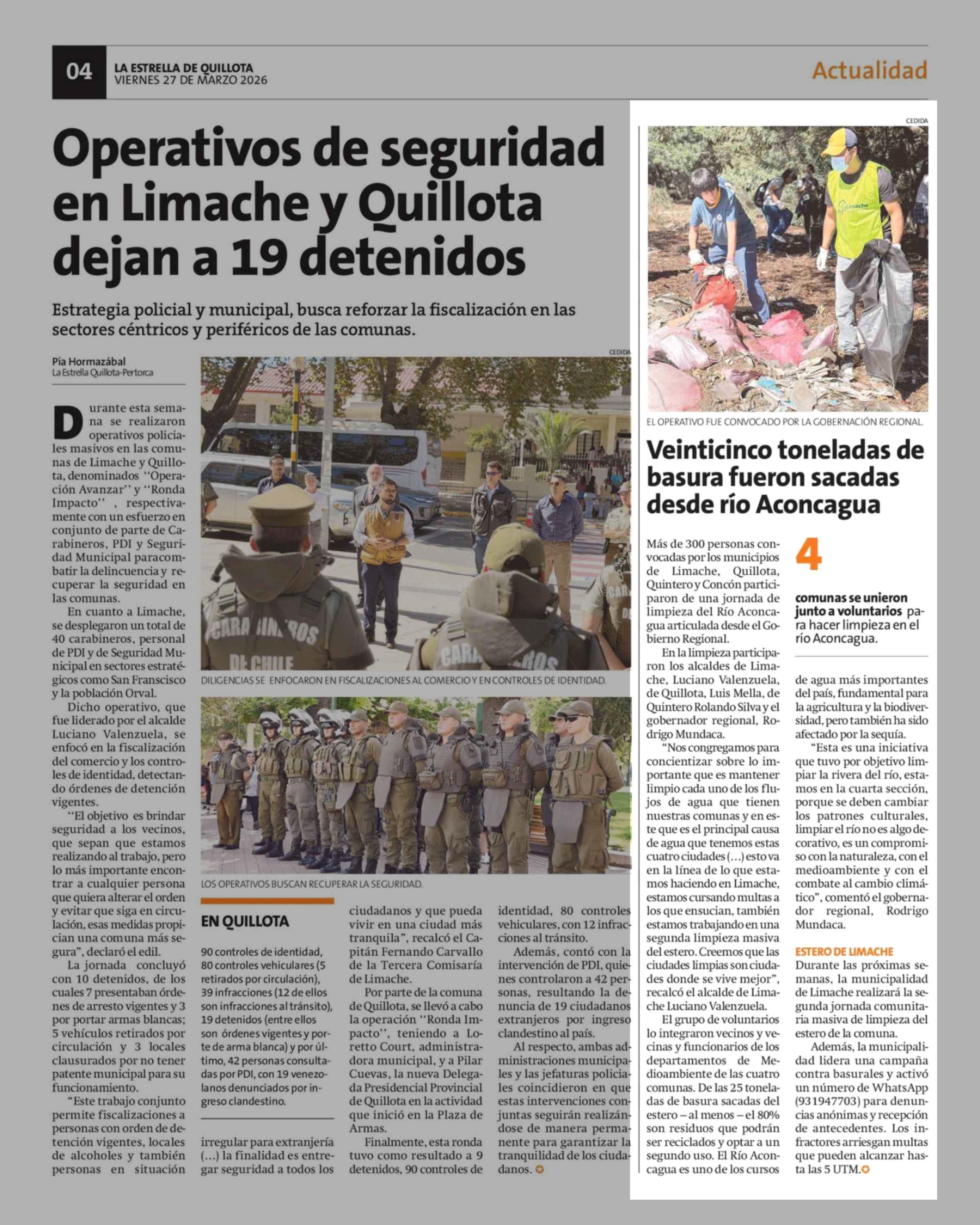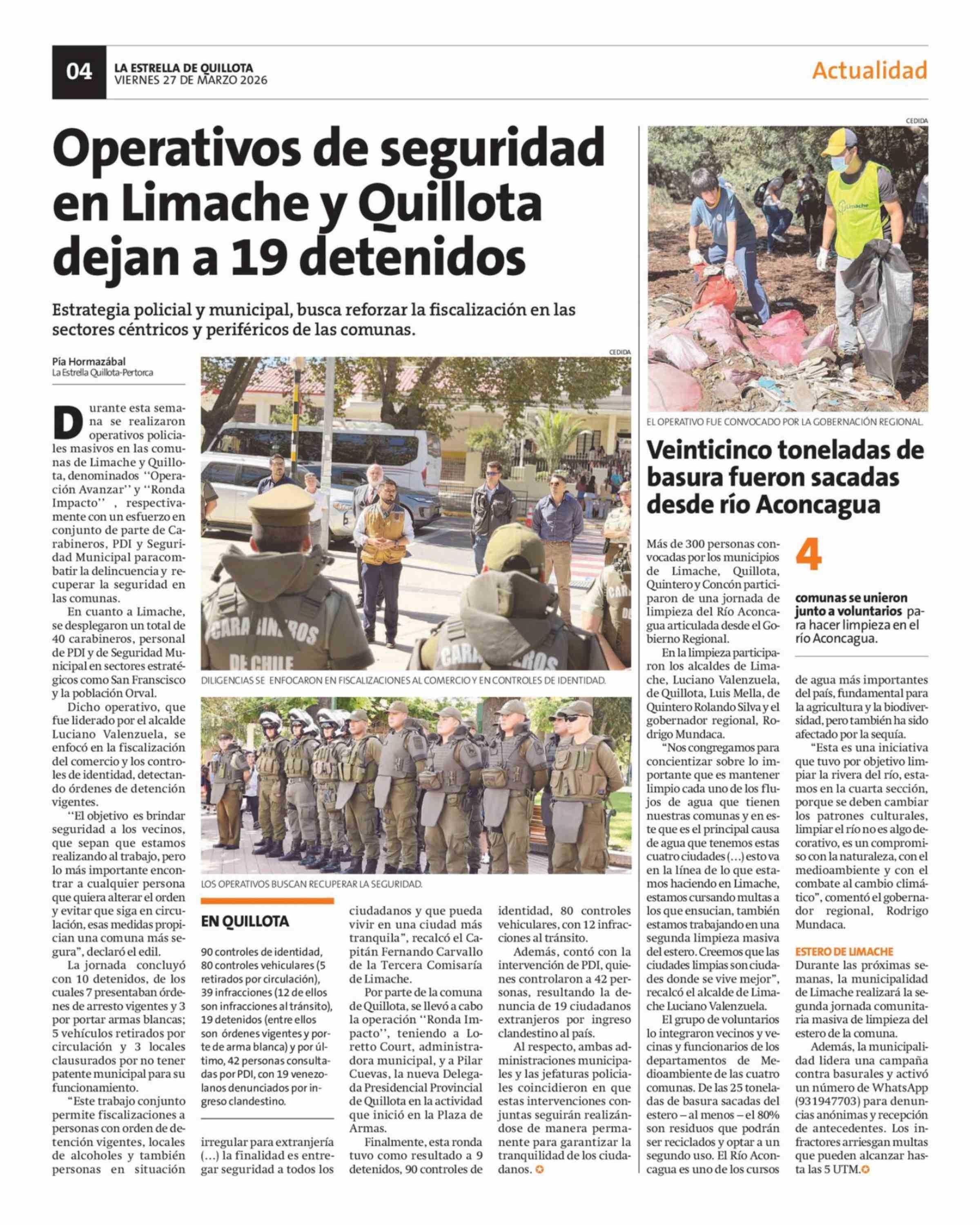 Veinticinco toneladas de basura fueron sacadas desde río Aconcagua 27-03-2026 La Estrella de Quillota |