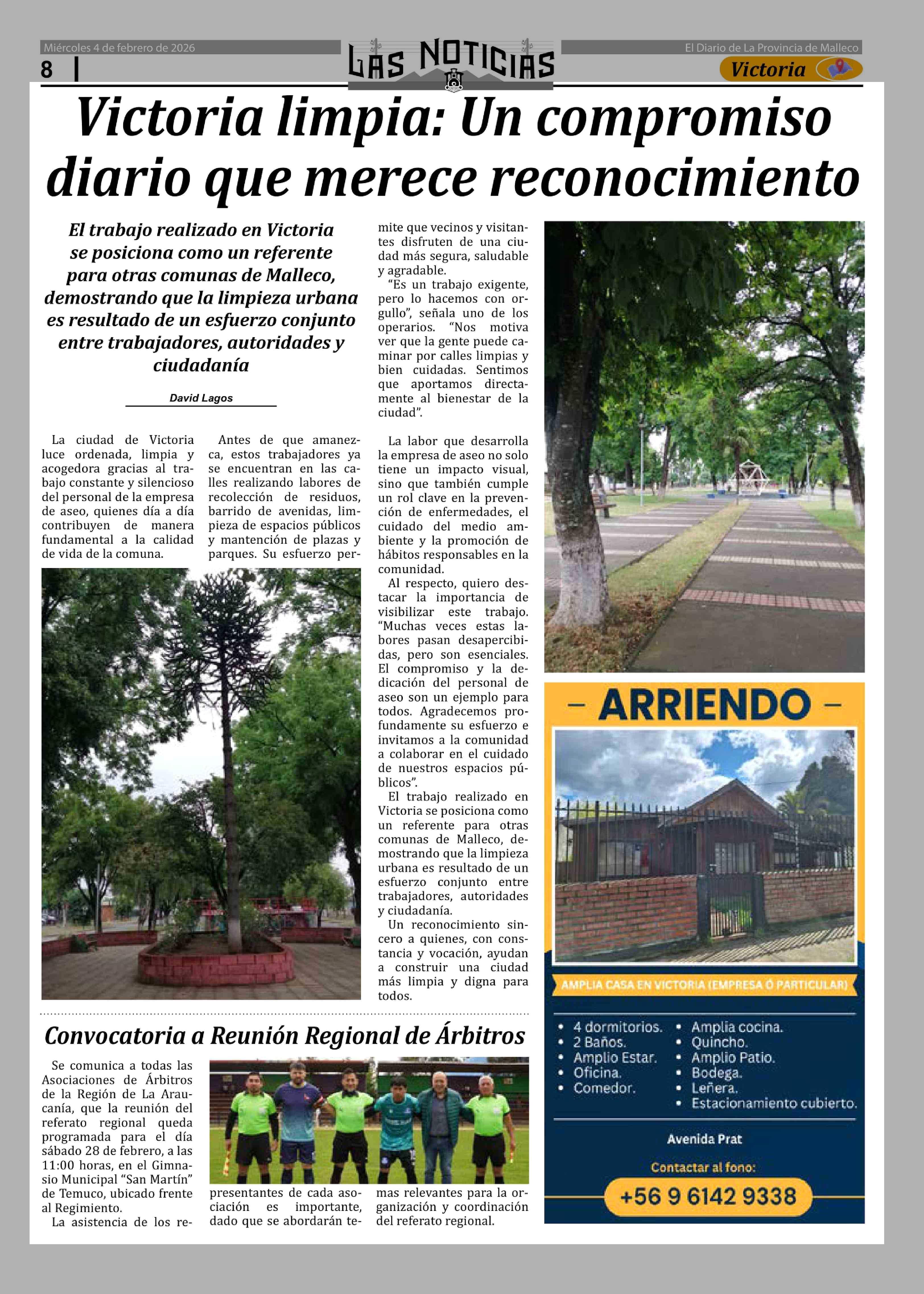 Victoria limpia: Un compromiso diario que merece reconocimiento 04-02-2026 Las Noticias |