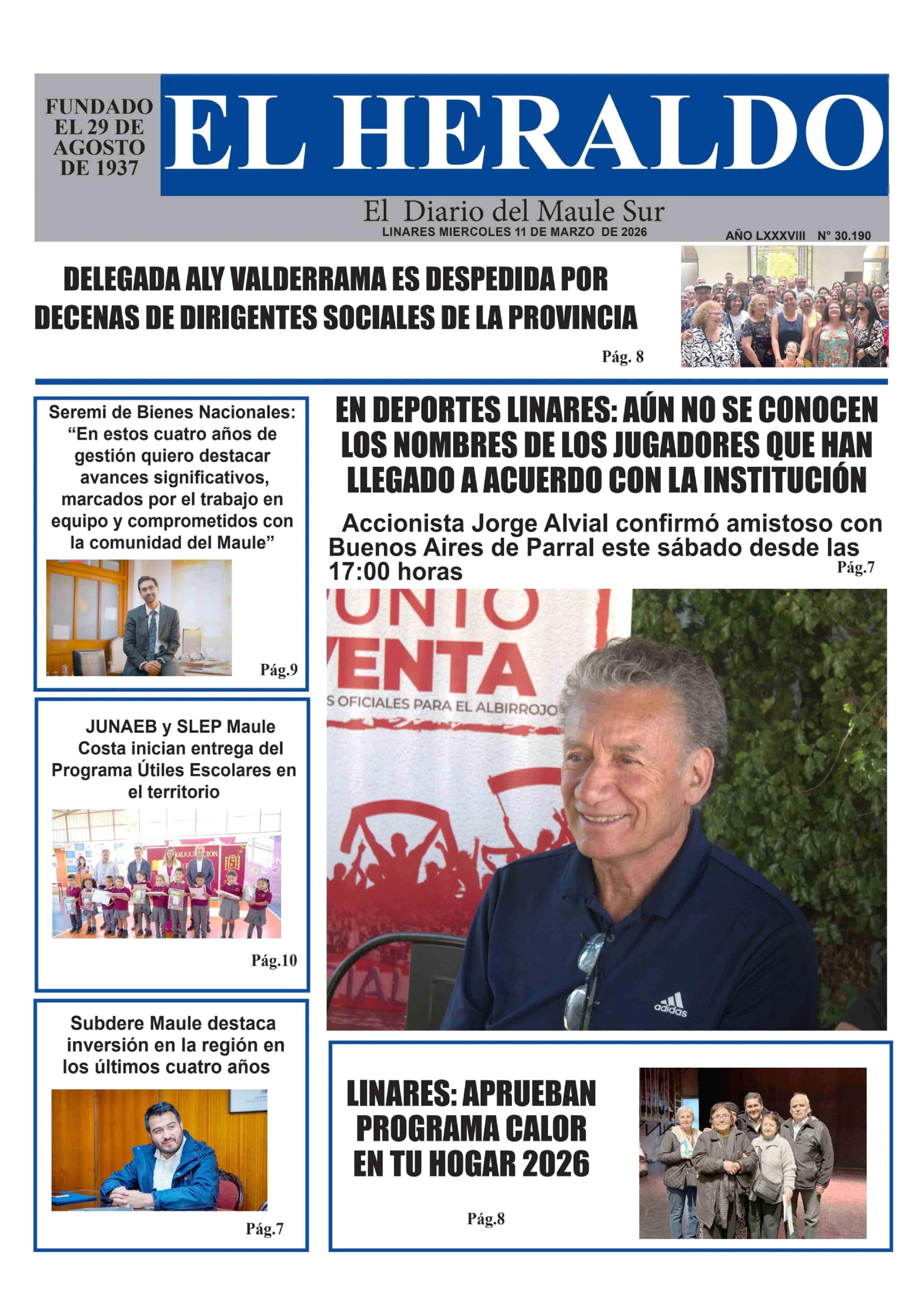 PORTADA EL HERALDO DE LINARES CHILE 11-03-2026 El Heraldo |