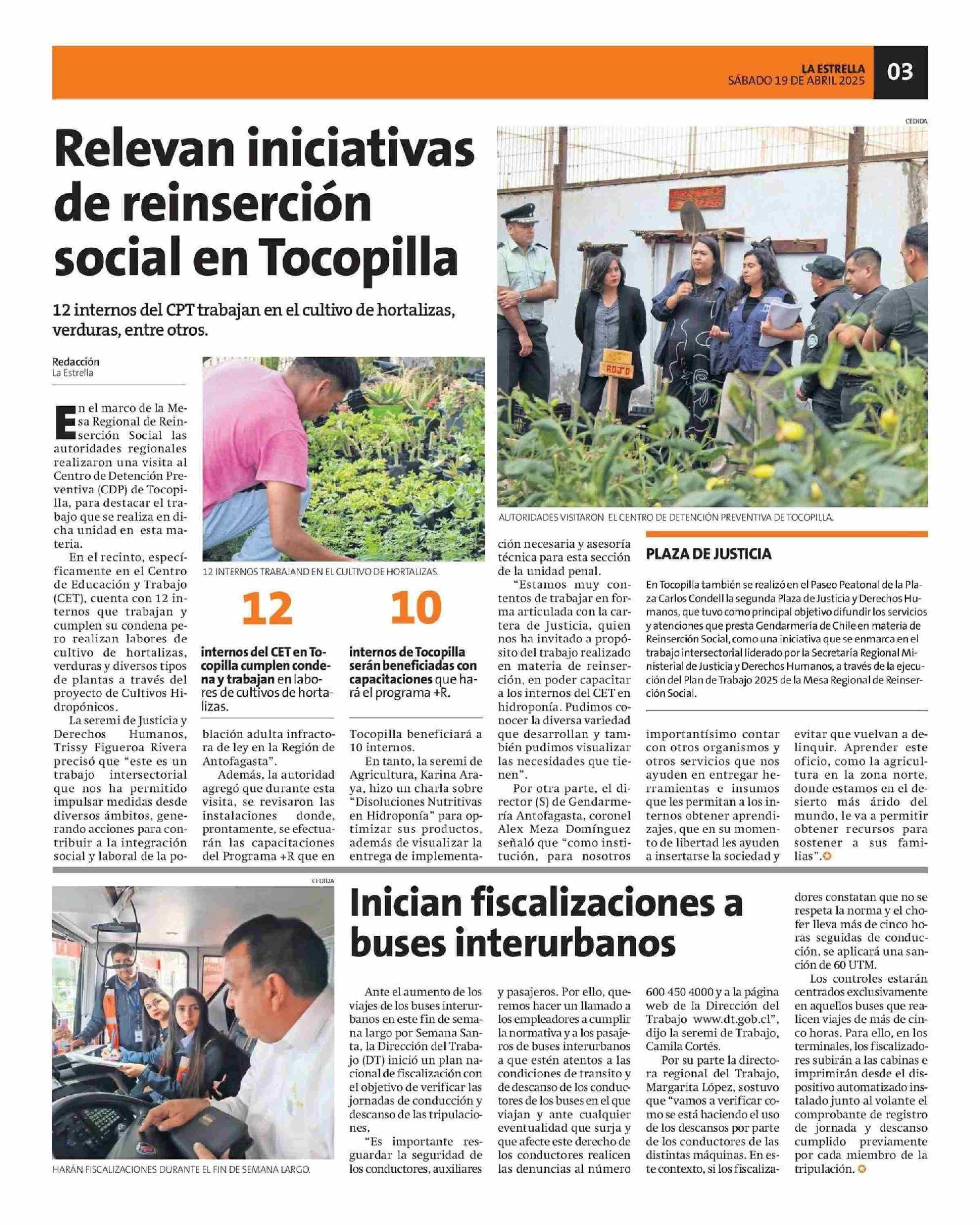 Relevan iniciativas de reinserción social en Tocopilla 19-04-2025 La Estrella de Antofagasta |