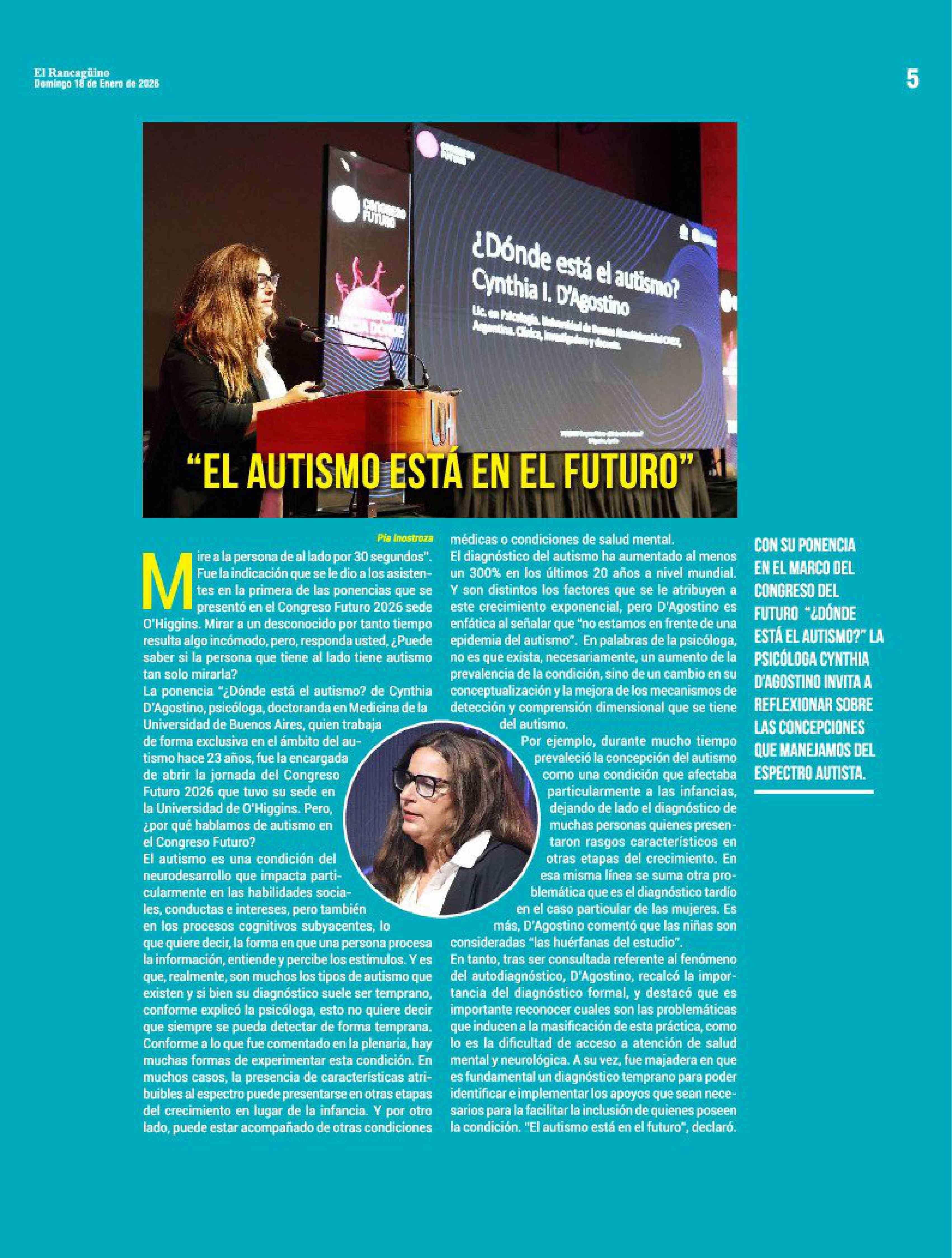 "EL AUTISMO ESTA EN EL FUTURO' 18-01-2026 El Rancagüino |