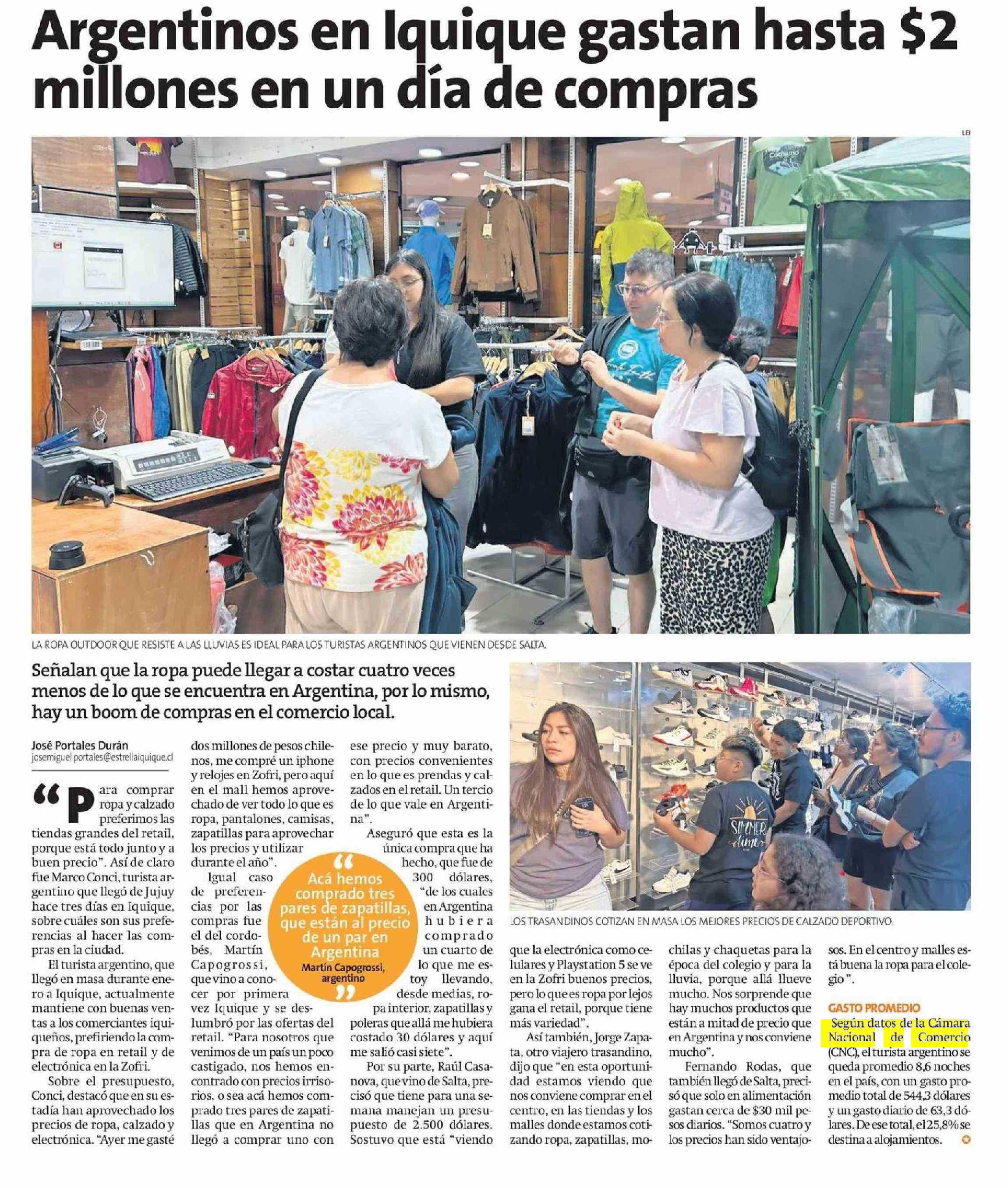Argentinos en Iquique gastan hasta 92 millones en un día de compras 29-01-2025 La Estrella de Iquique |