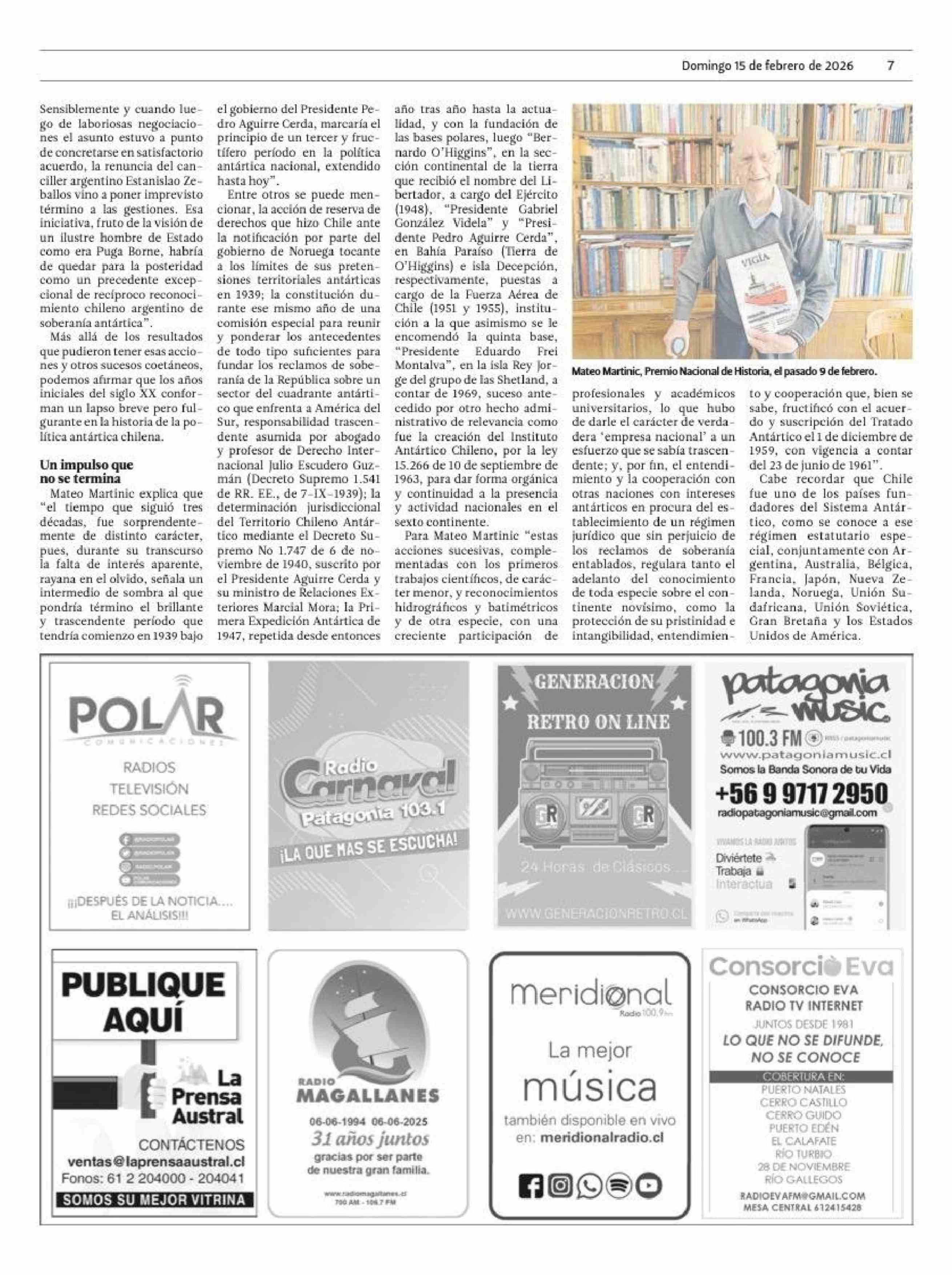 | Fecha: | 15-02-2026 | Sector: | Noticia general | Región: | Región de Magallanes y de la Antártica Chilena |