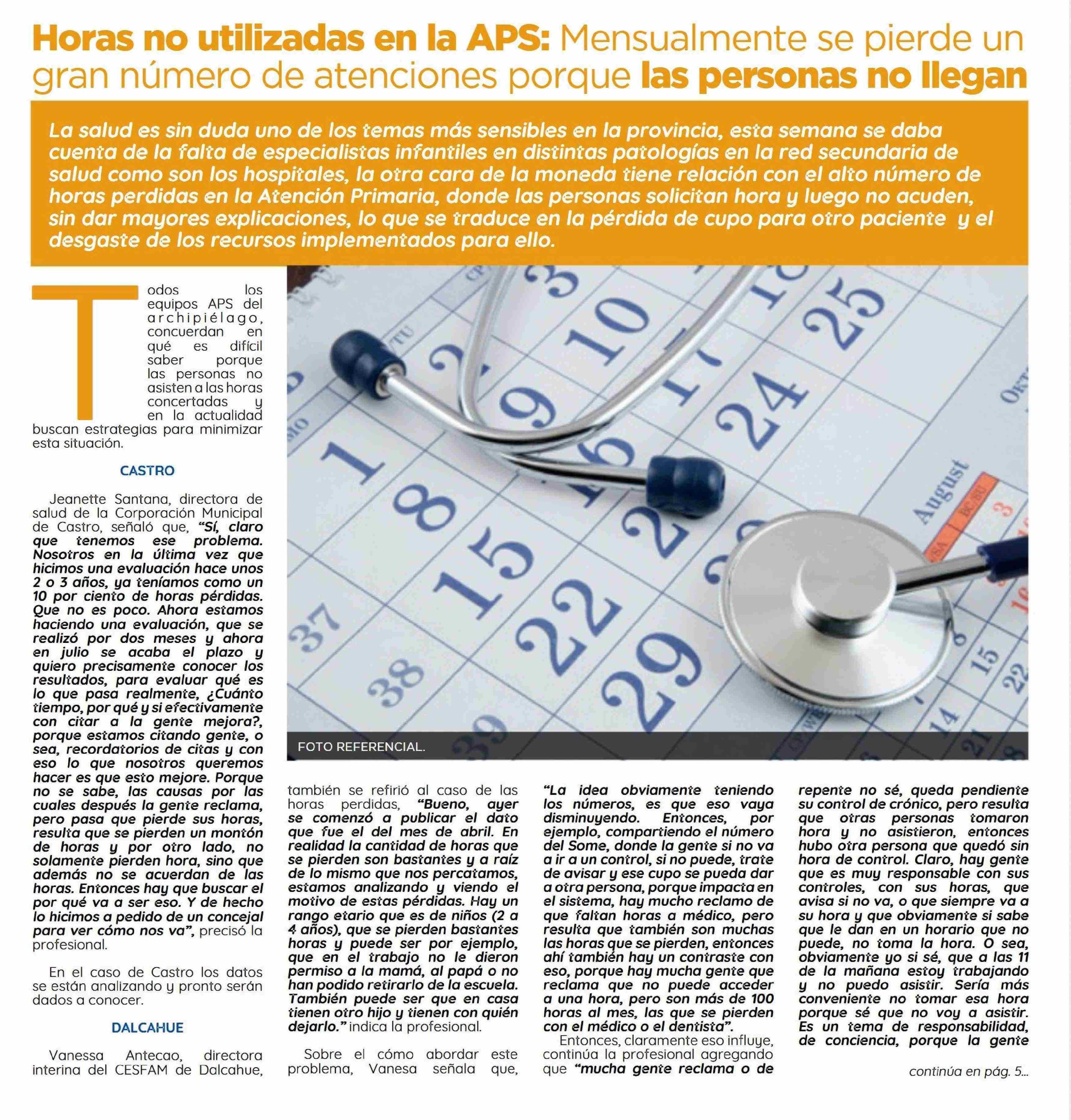 | Título: | Horas no utilizadas en la APS: Mensualmente se pierde un gran número de atenciones porque las personas no llegan |