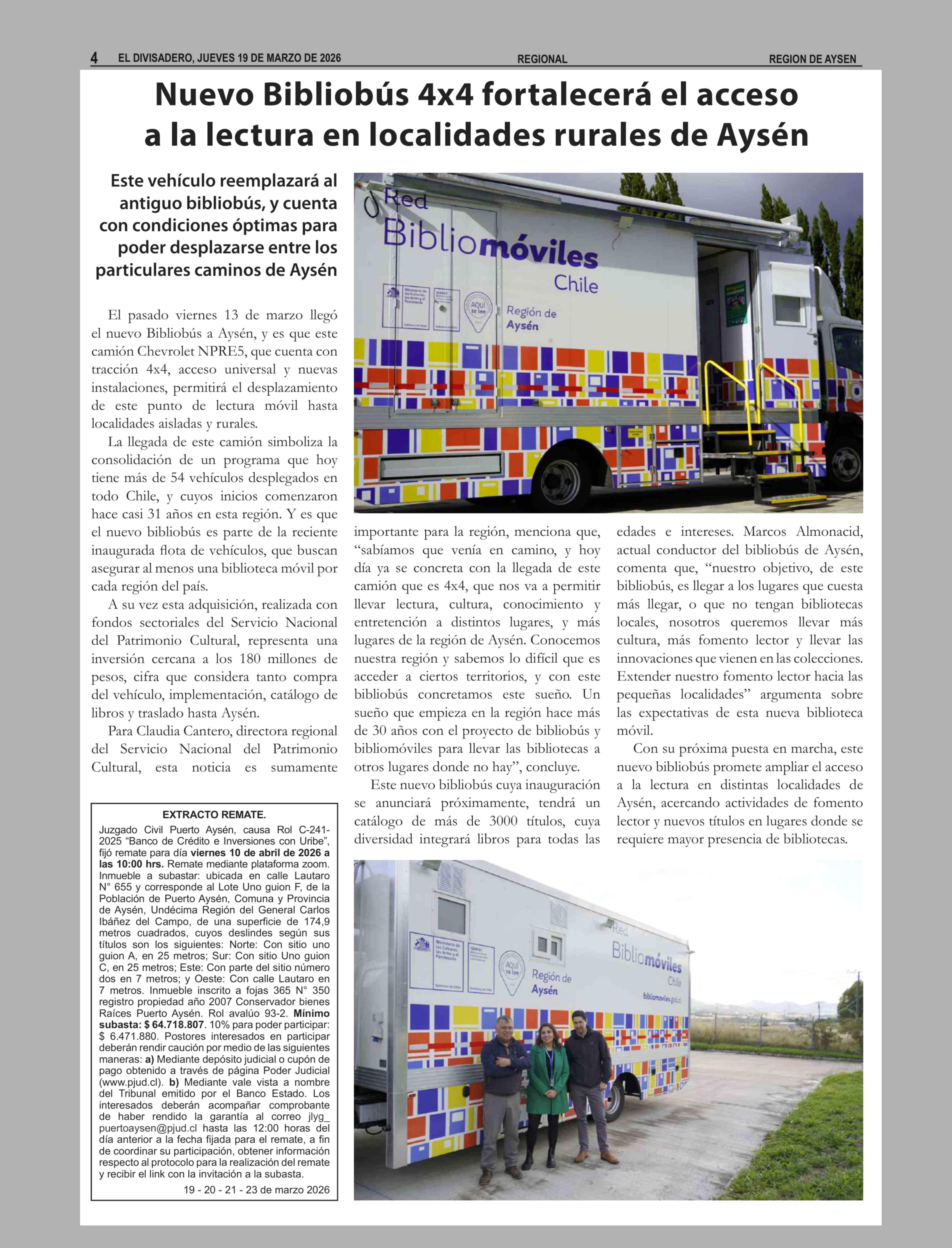 Nuevo Bibliobús 4x4 fortalecerá el acceso a la lectura en localidades rurales de Aysén 19-03-2026 El Divisadero |