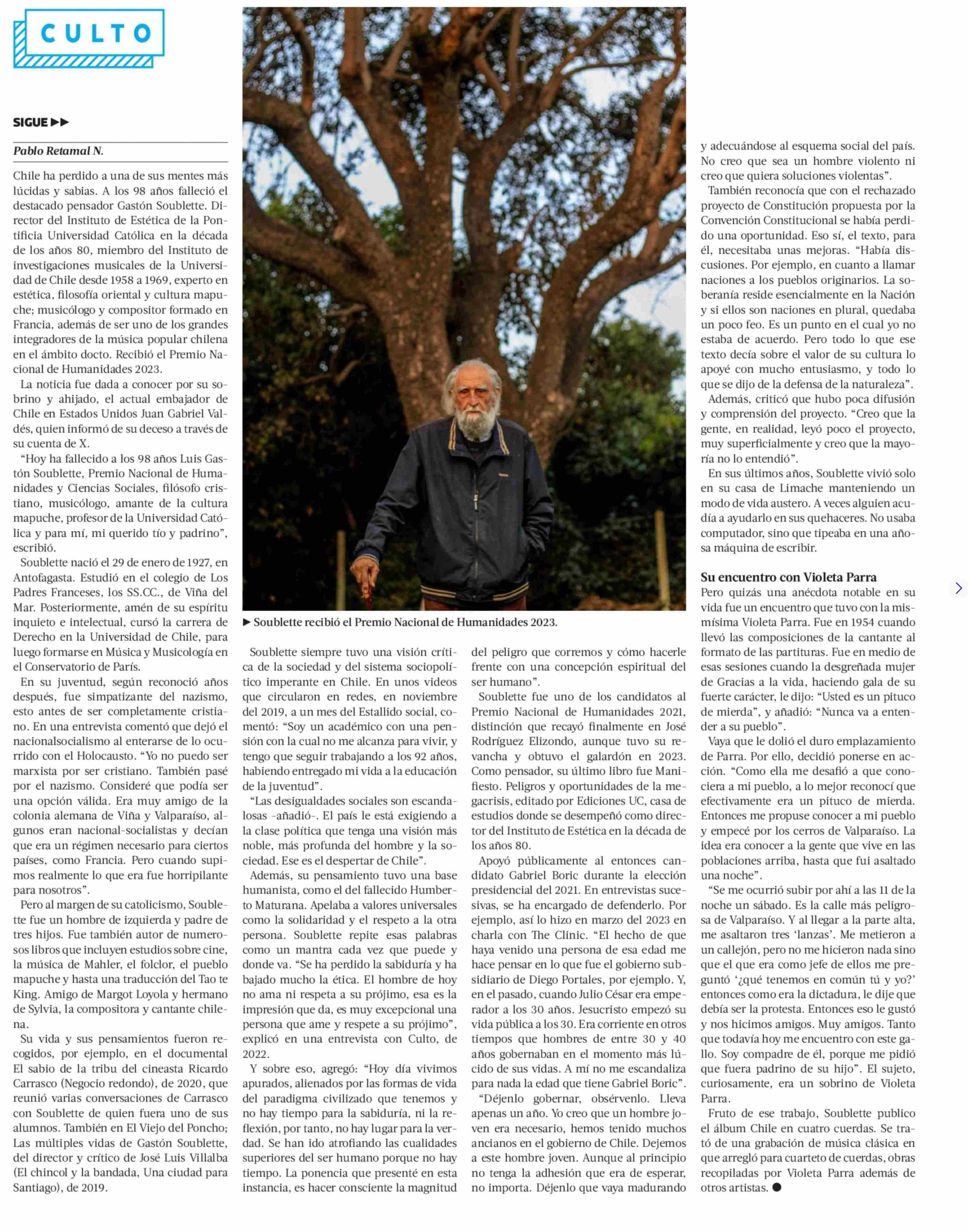 Gastón Soublette, muere el “sabio de la tribu” que penso e Chile 26-05-2025 La Tercera |