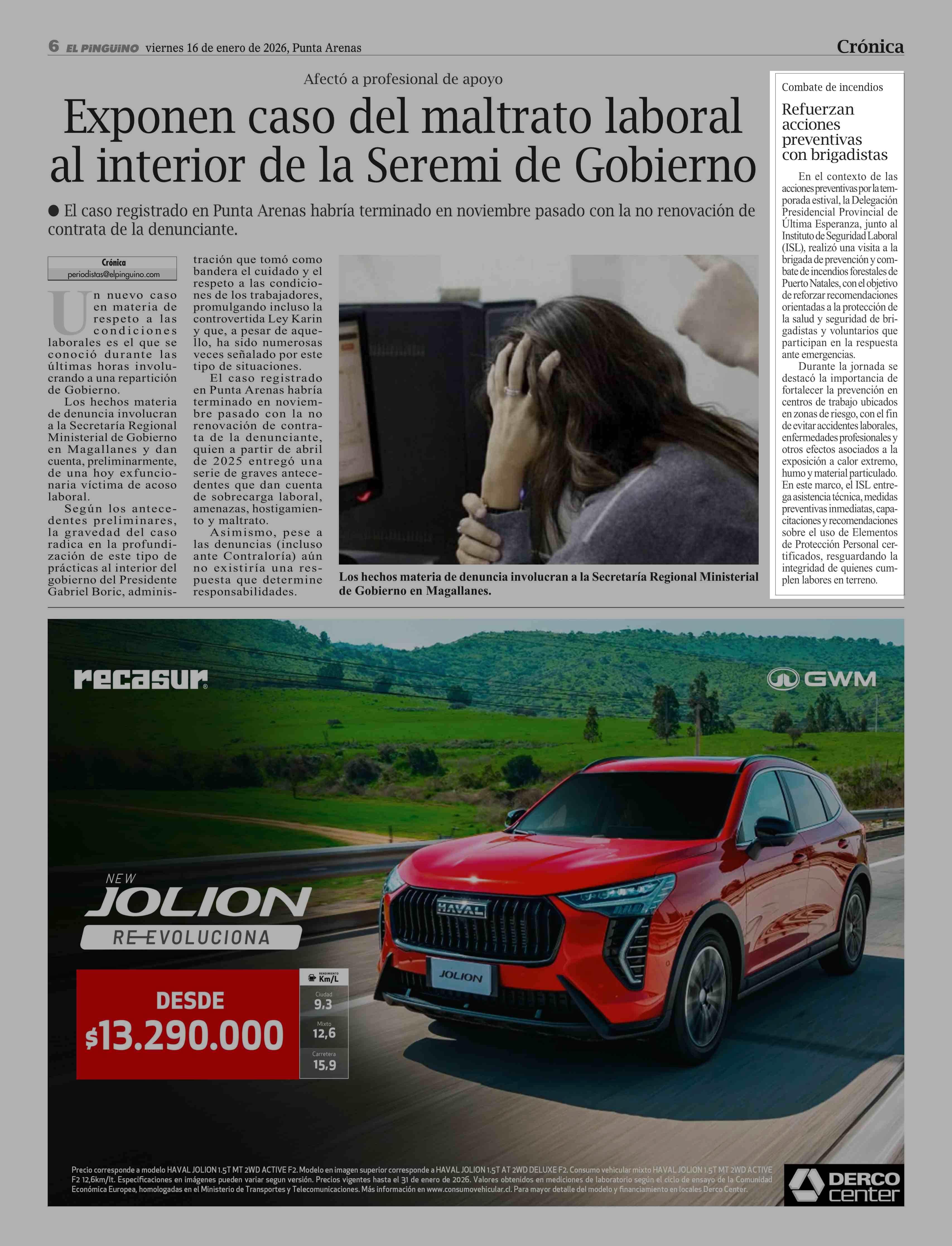 | Fecha: | 16-01-2026 | Sector: | Noticia general | Región: | Región de Magallanes y de la Antártica Chilena |