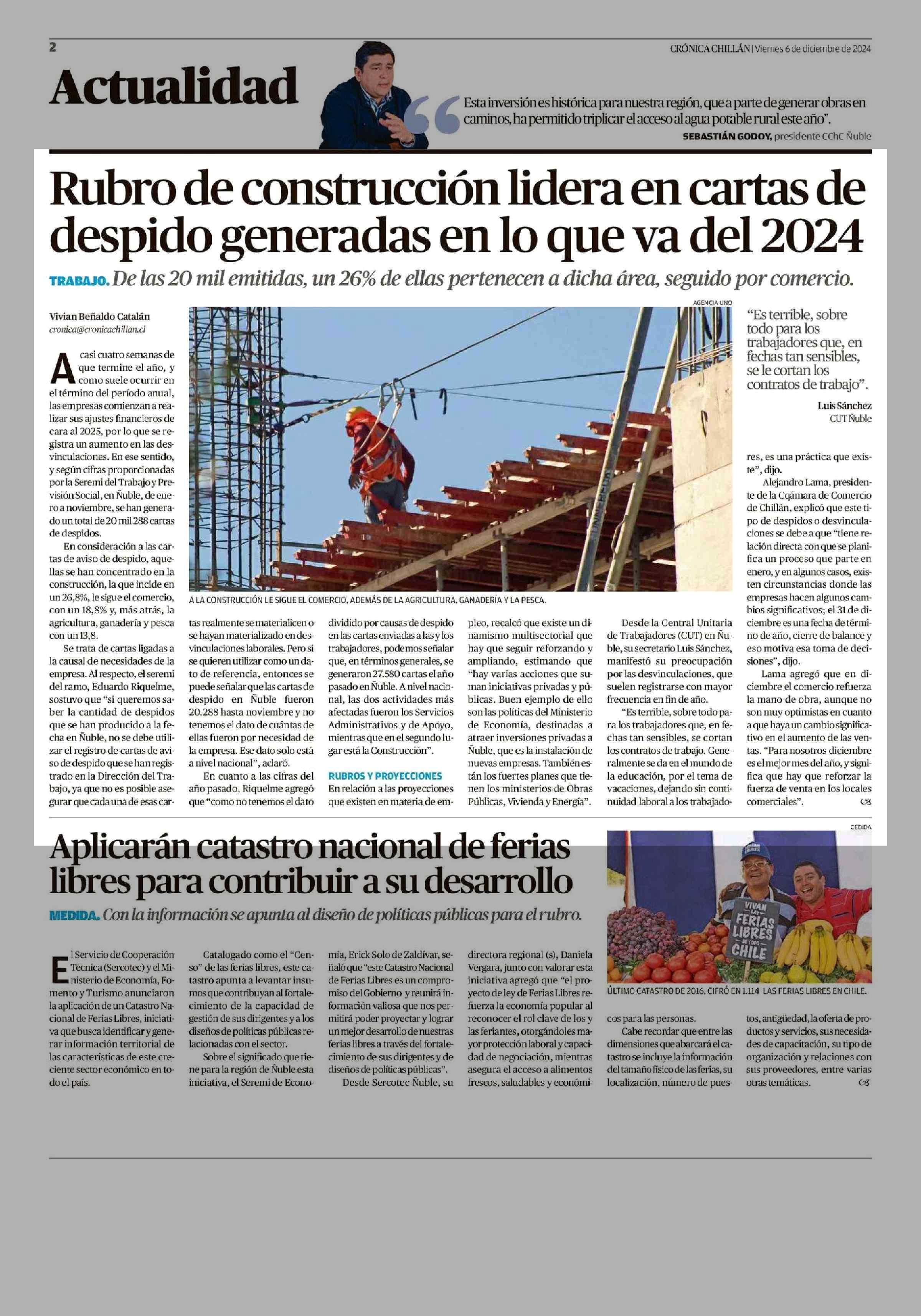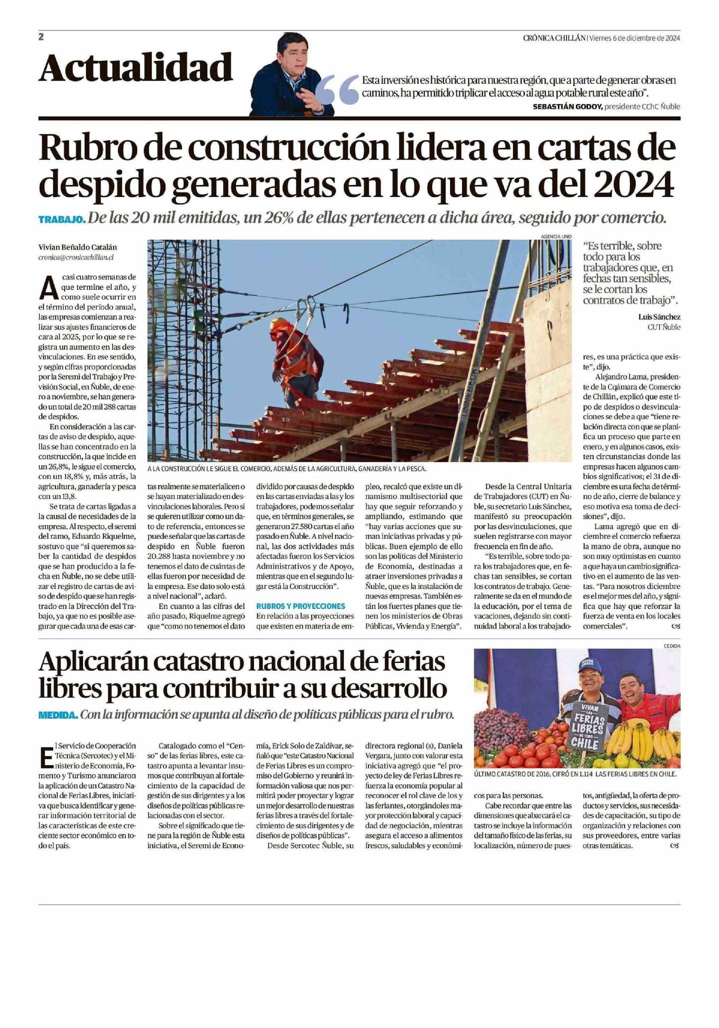 Rubro de construcción lidera en cartas de despido generadas en lo que va del 2024 06-12-2024 Crónica de Chillán |