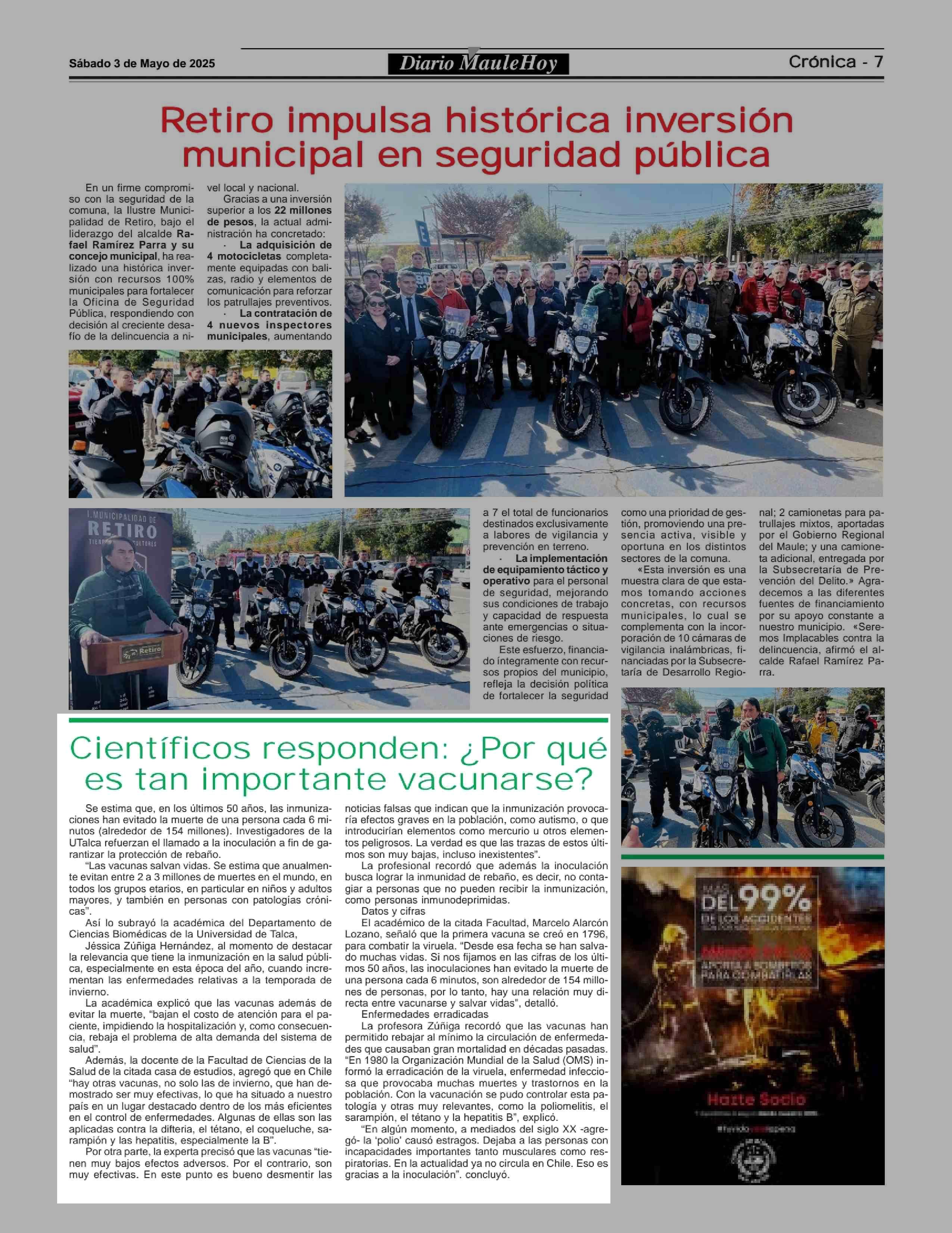 Fecha: 03-05-2025 Sector: Noticia general Región: Región del Maule