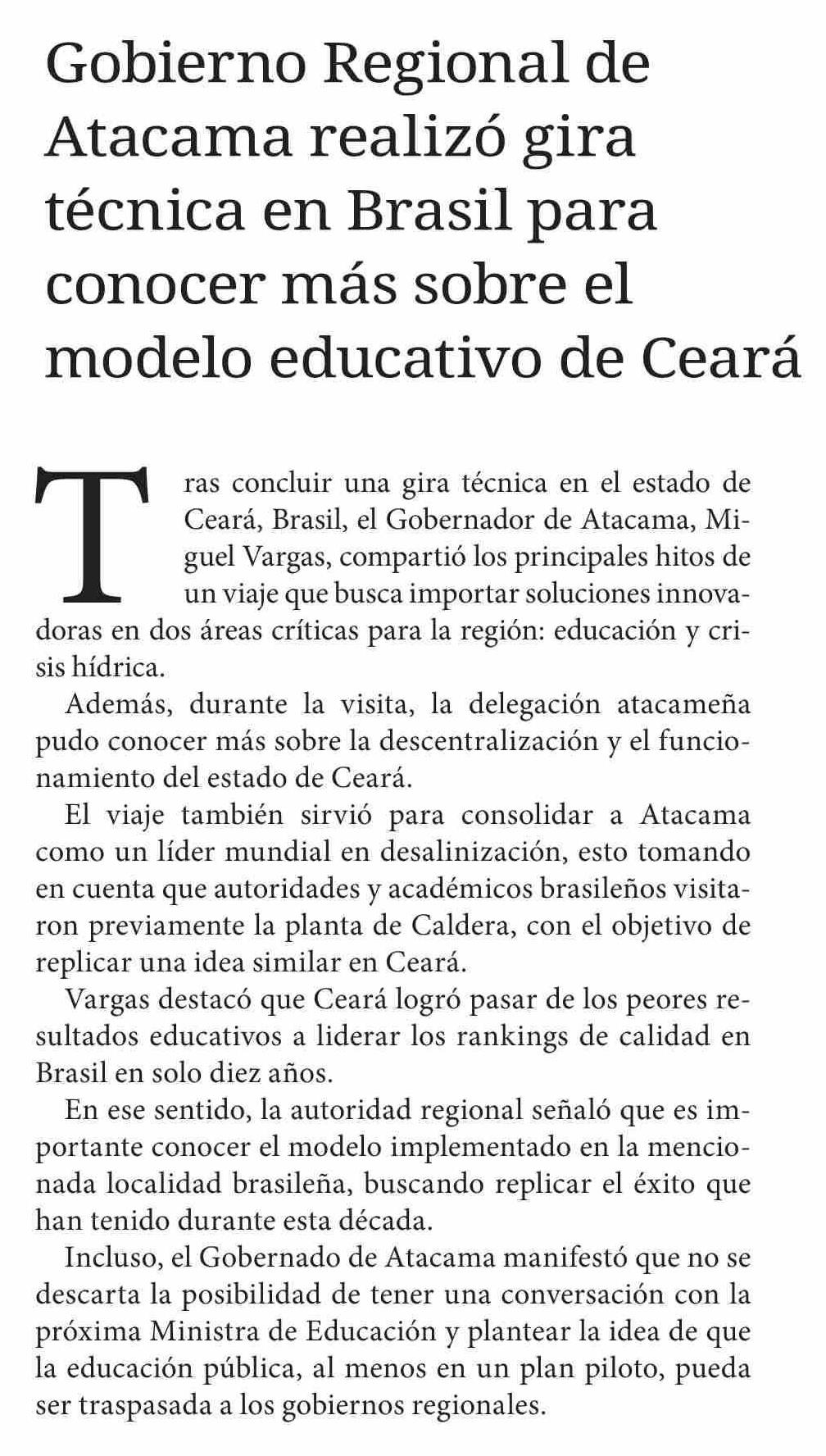 Título: Gobierno Regional de Atacama realizó gira técnica en Brasil para conocer más sobre el modelo educativo de Ceará