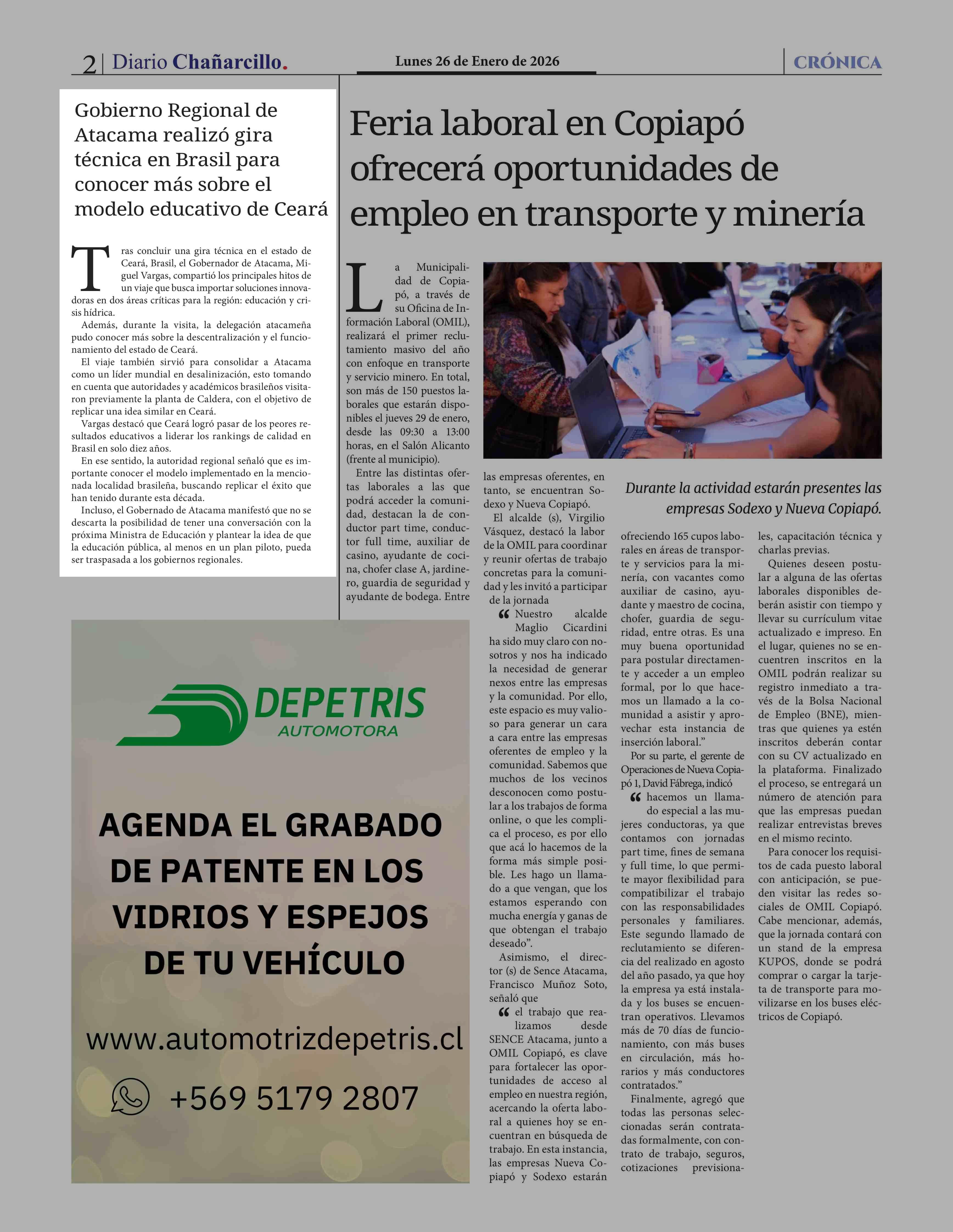 Fuente: Diario Chañarcillo (Diario Chanarcillo) Página(s): 2