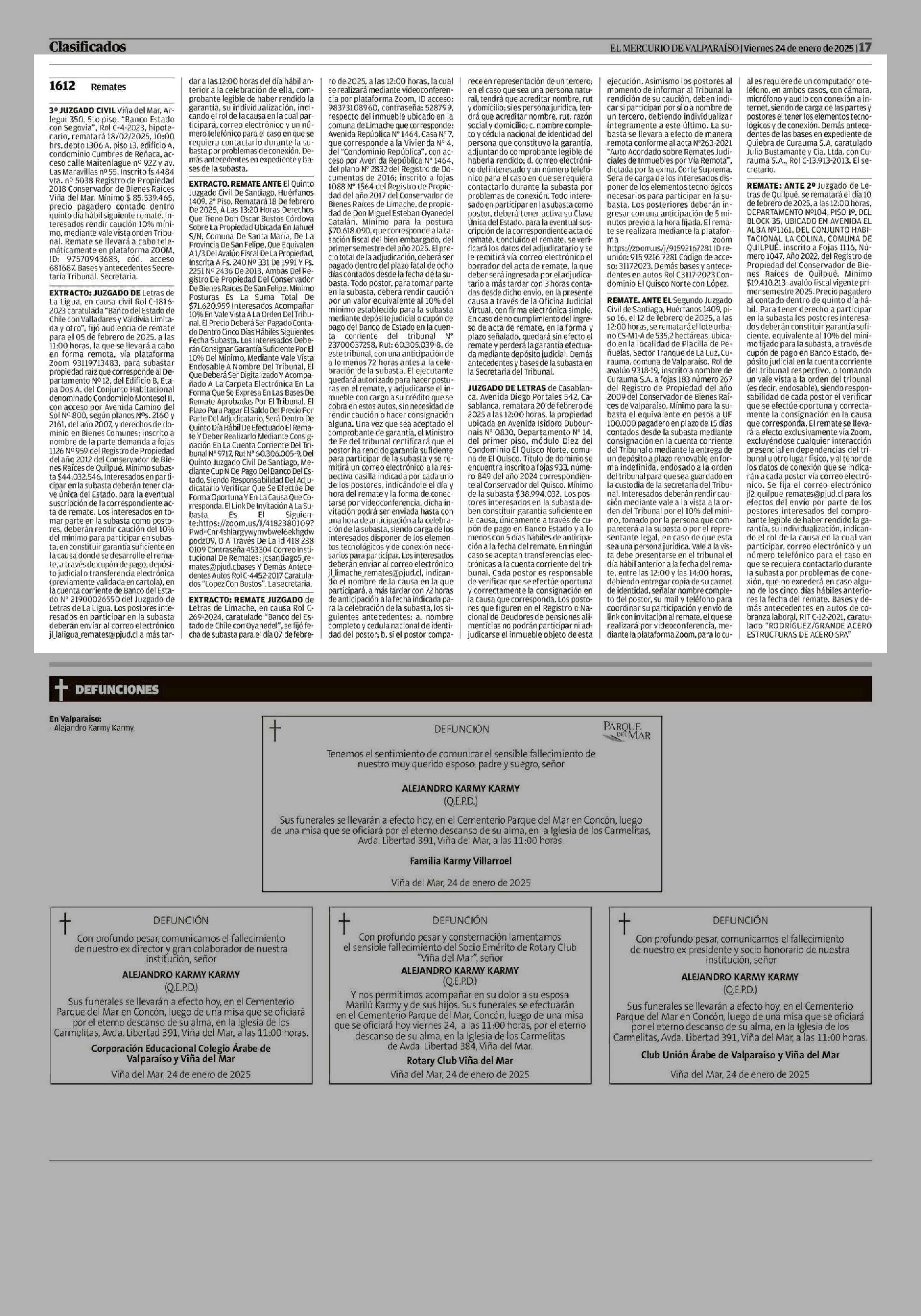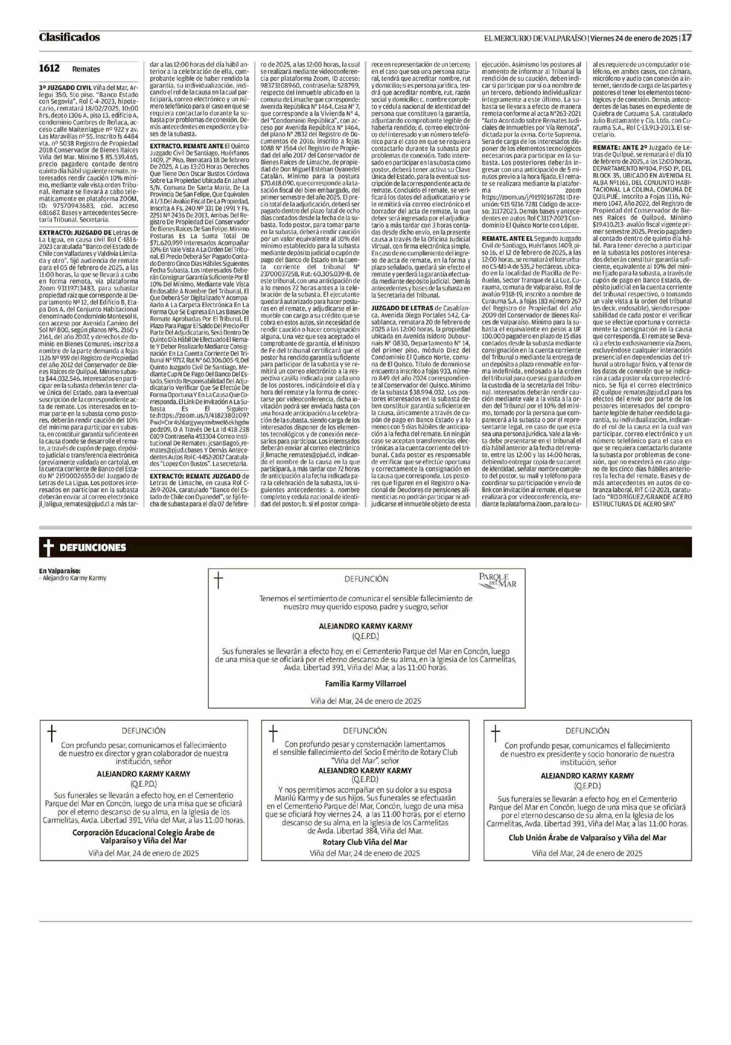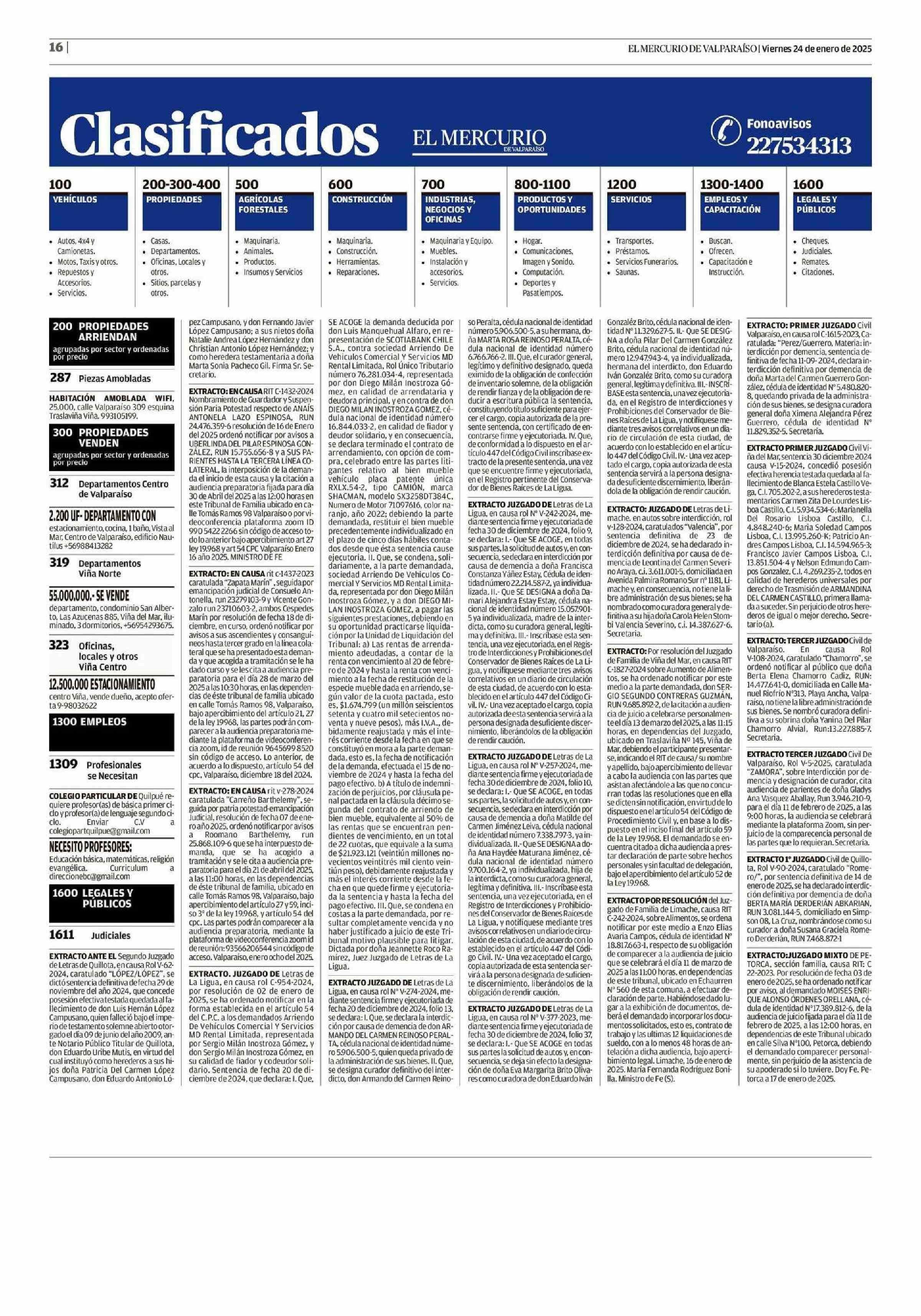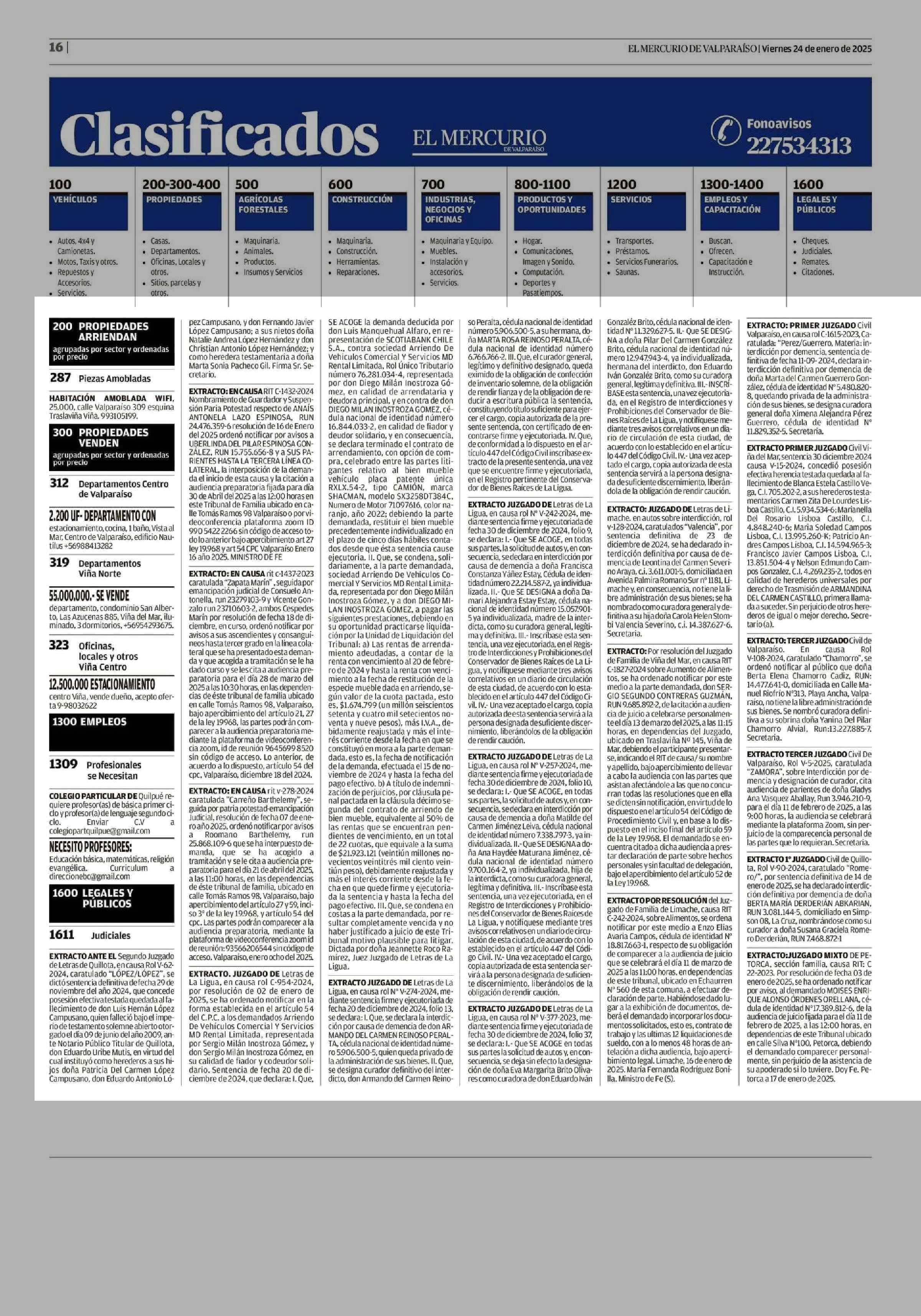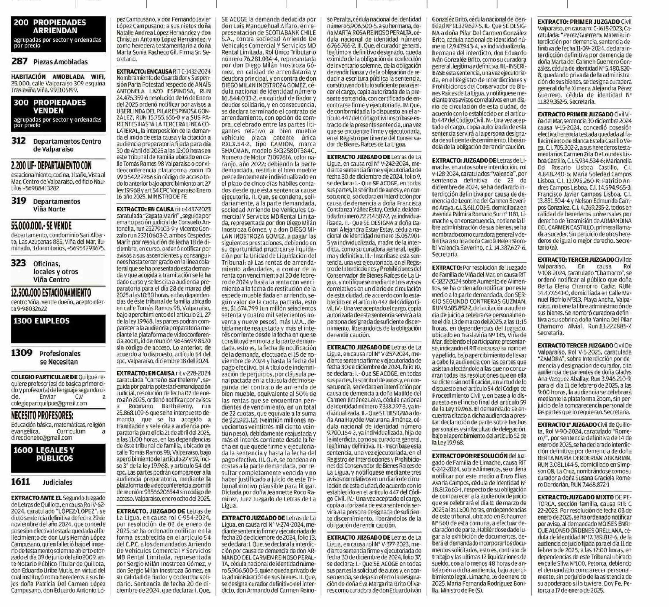 Extractos: CLASIFICADOS 24-01-2025 El Mercurio de Valparaíso |