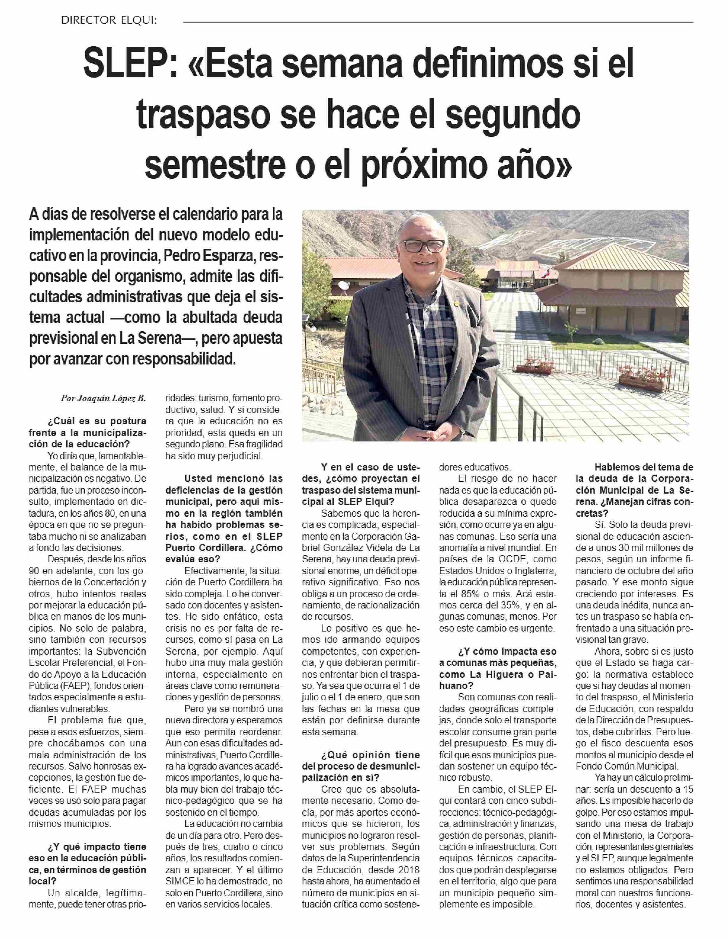 Título: SLEP: «Esta semana definimos si el traspaso se hace el segundo semestre o el próximo año»