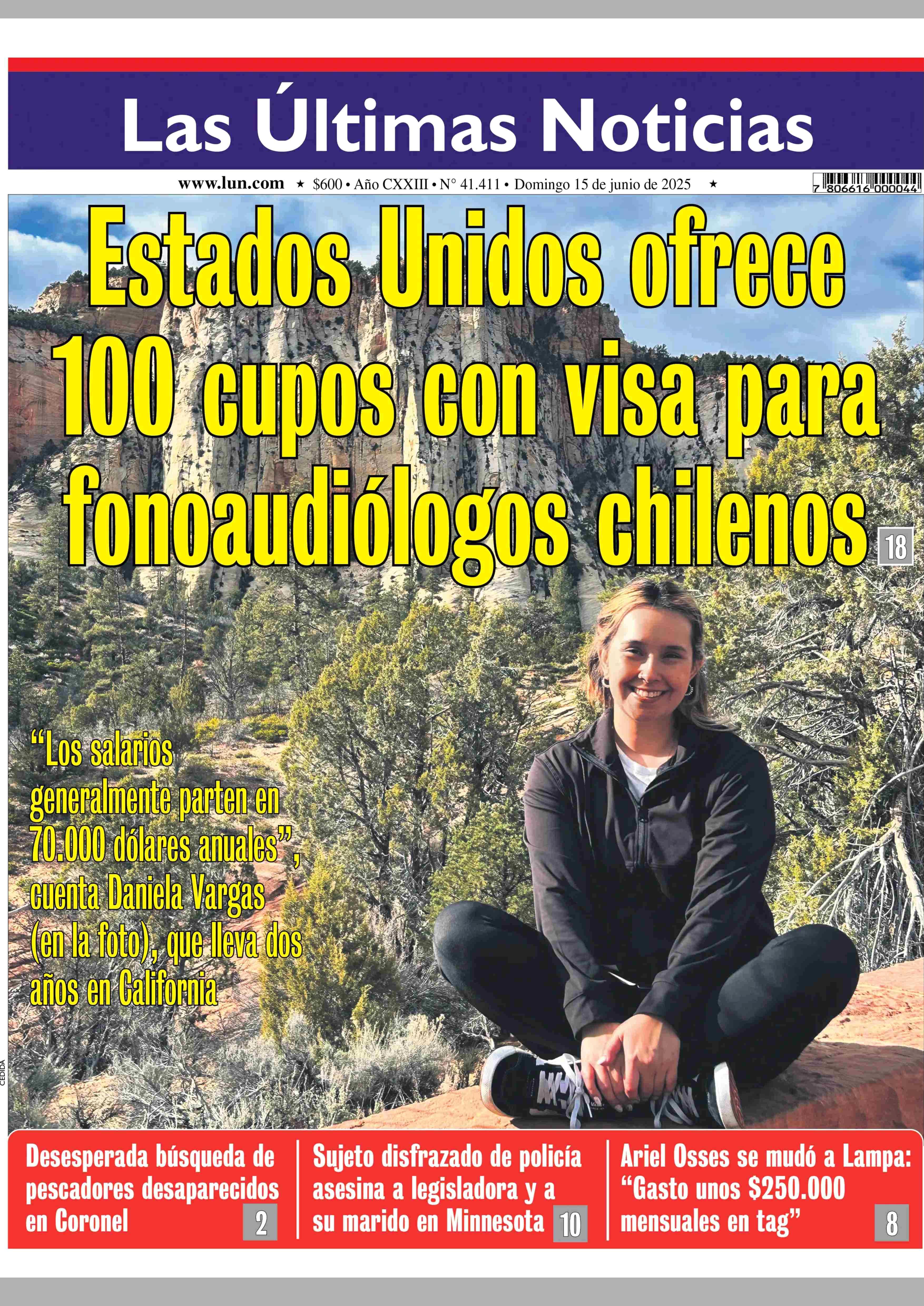 PORTADA LAS ÚLTIMAS NOTICIAS - CHILE 15-06-2025 Las Últimas Noticias |