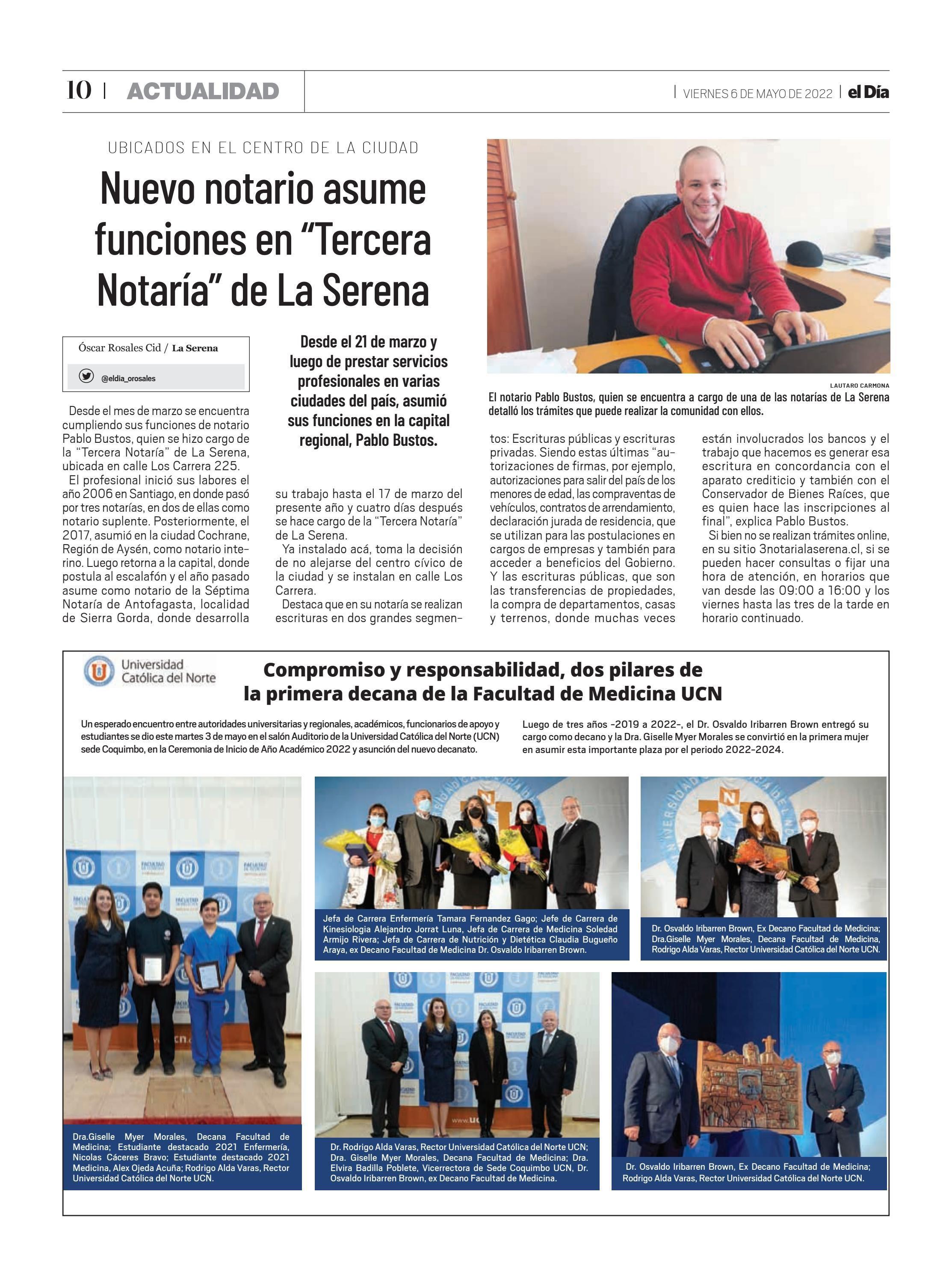 Compromiso y responsabilidad, dos pilares de la primera decana de la Facultad de Medicina UCN 06-05-2022 El Día |