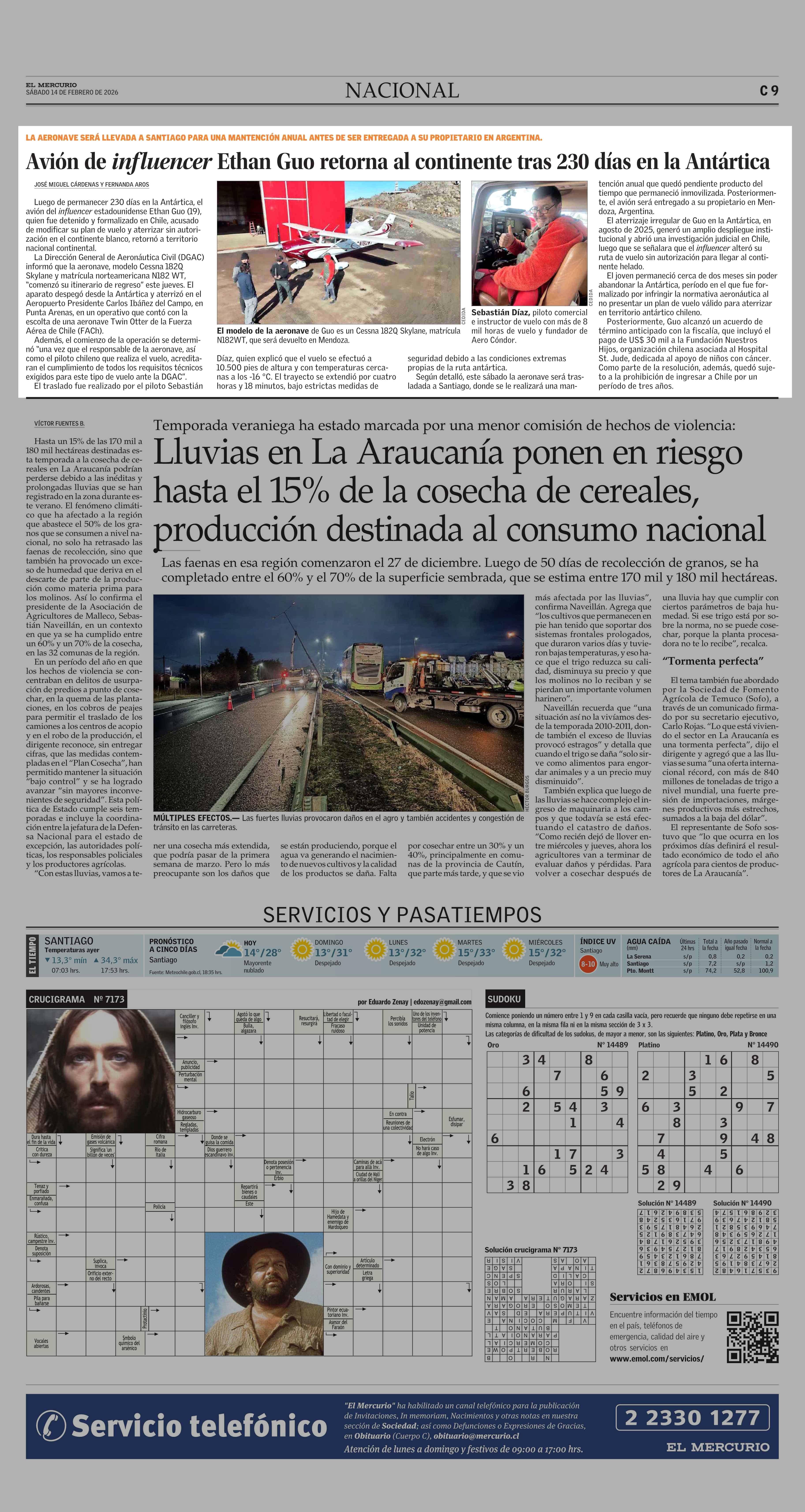 Avión de influencer Ethan Guo retorna al continente tras 230 días en la Antártica 14-02-2026 El Mercurio |