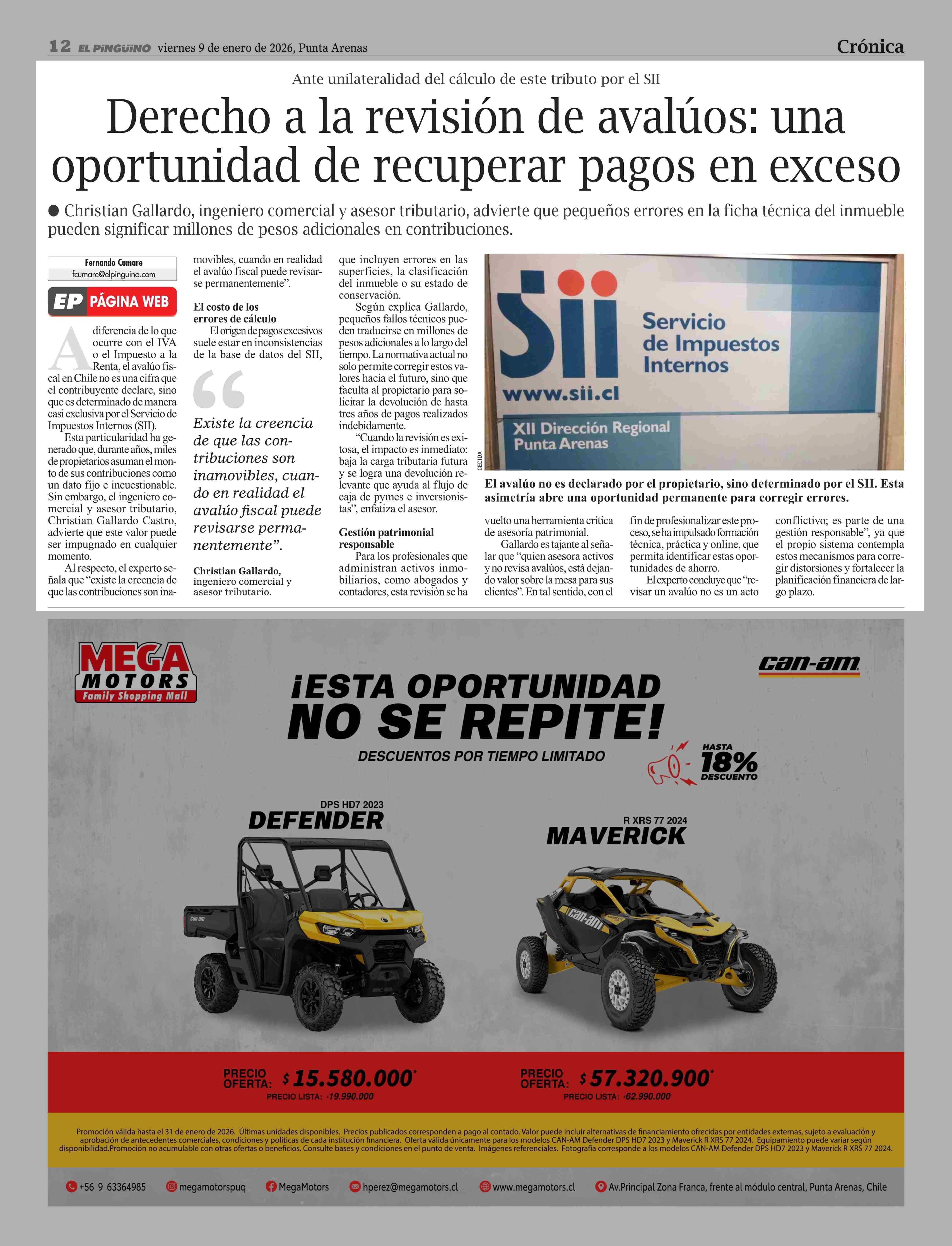 Derecho a la revisión de avalúos: una oportunidad de recuperar pagos en exceso 09-01-2026 El Pingüino |
