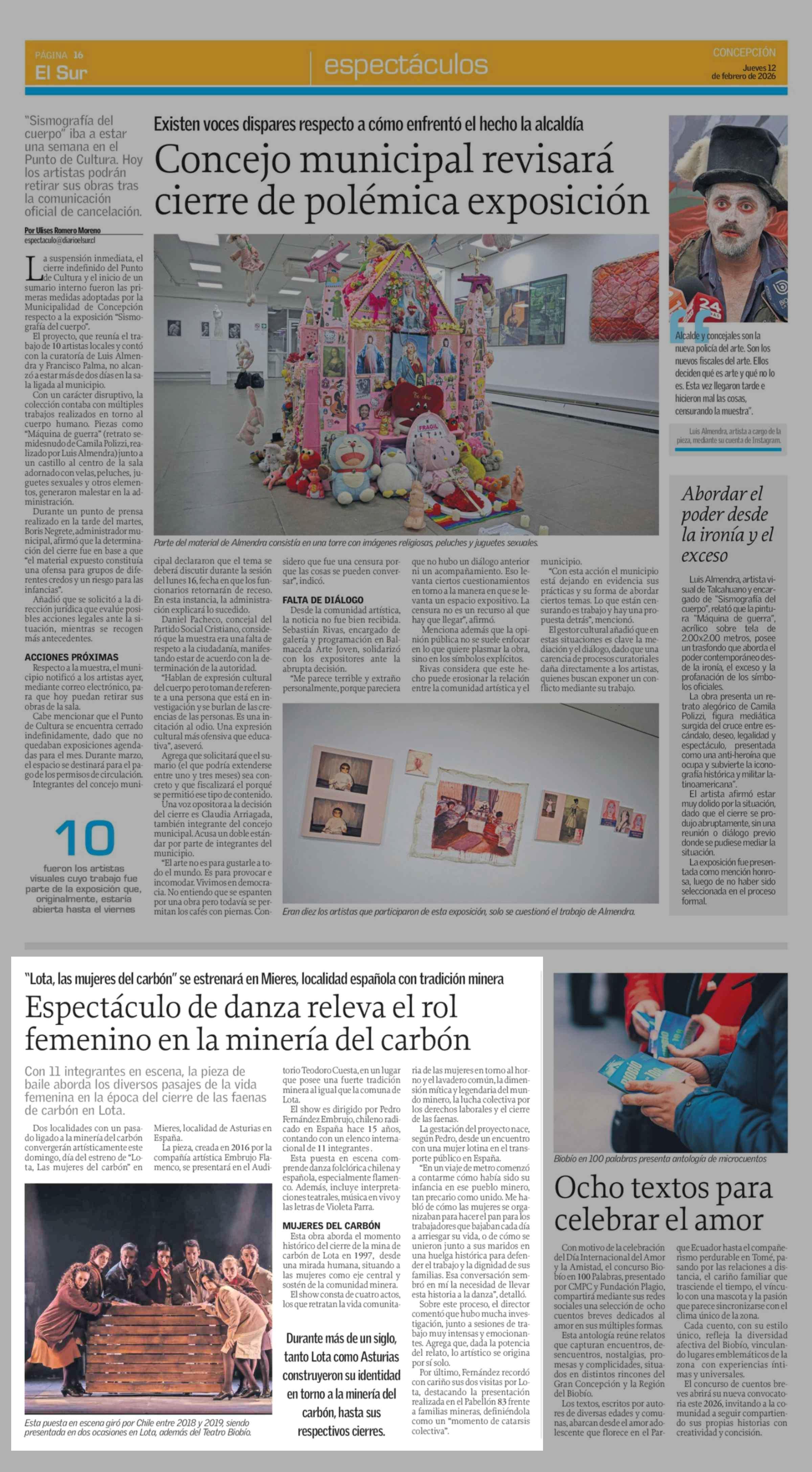 Espectáculo de danza releva el rol femenino en la minería del carbón 12-02-2026 El Sur |