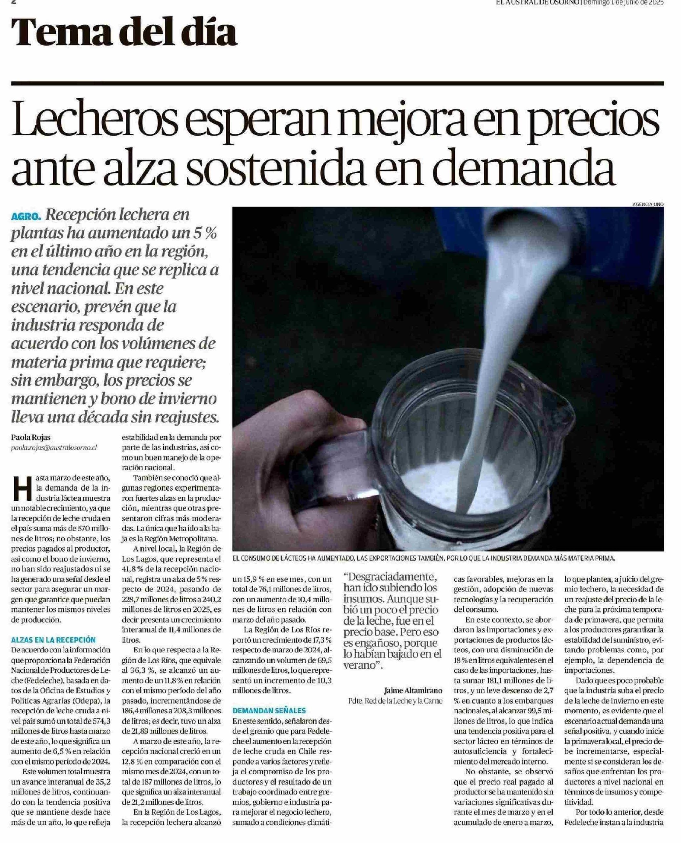 Título: Lecheros esperan mejora en precios ante alza sostenida en demanda