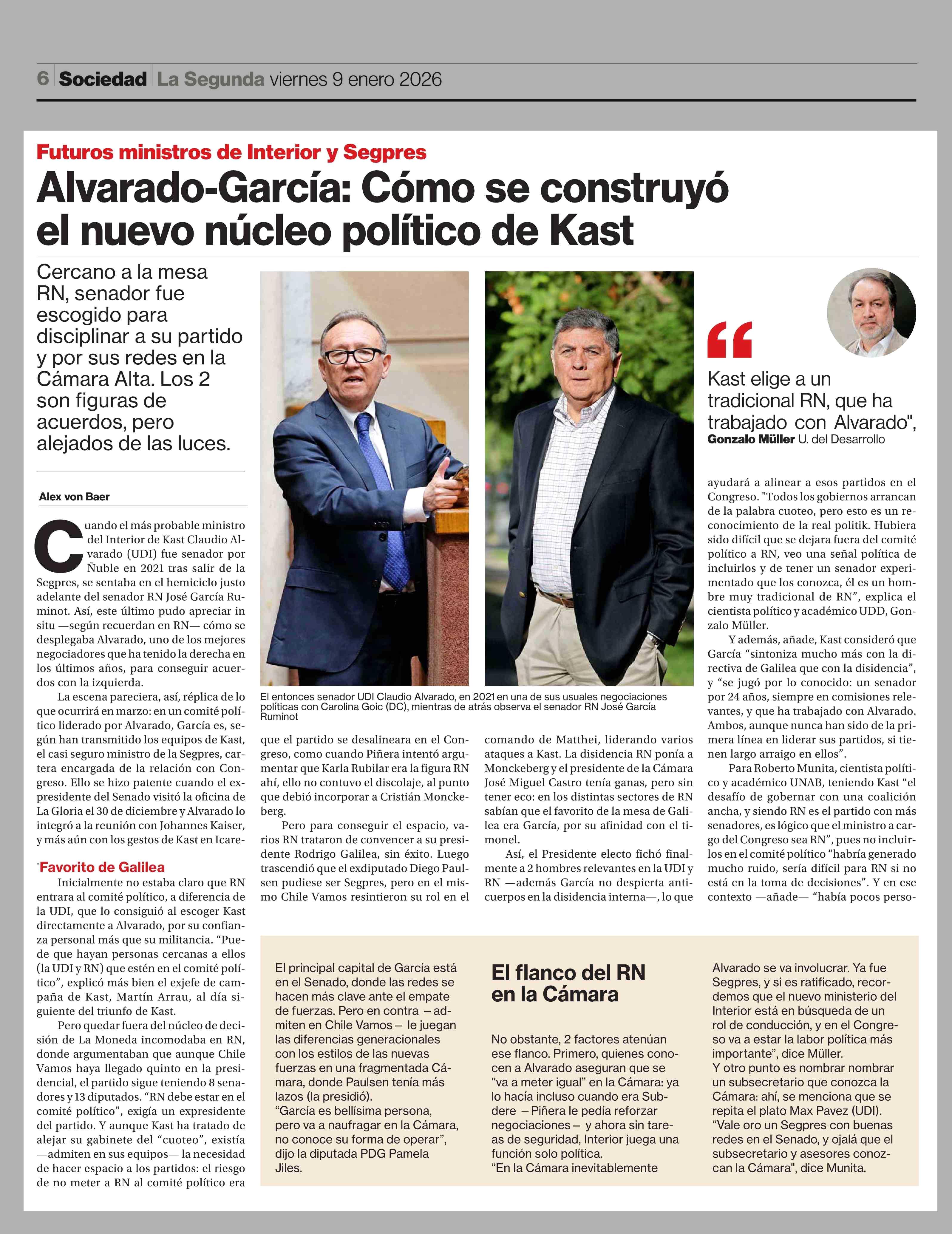 Alvarado-García: Cómo se construyó el nuevo núcleo político de Kast 09-01-2026 La Segunda |