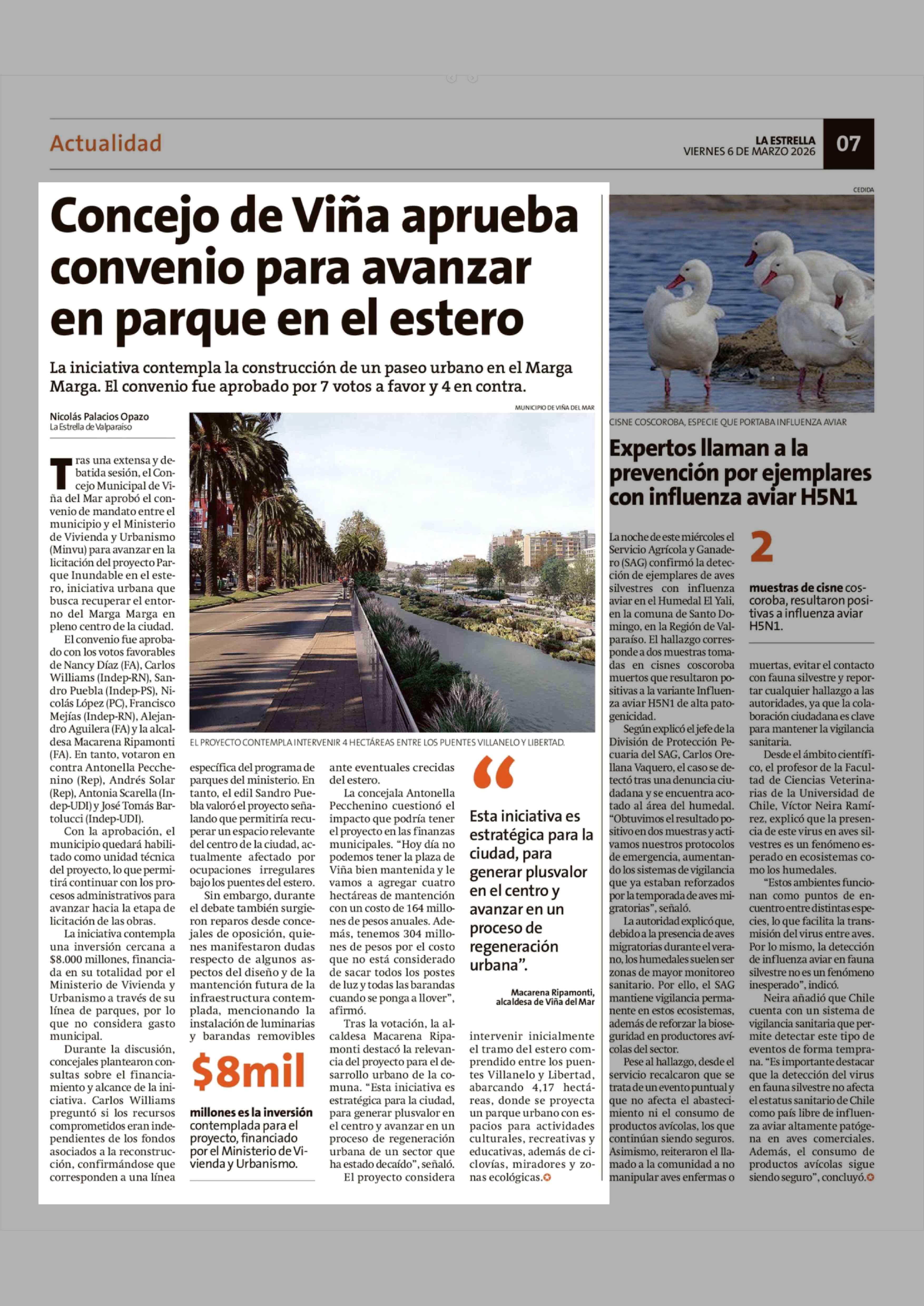Título: Concejo de Viña aprueba convenio para avanzar en parque en el estero