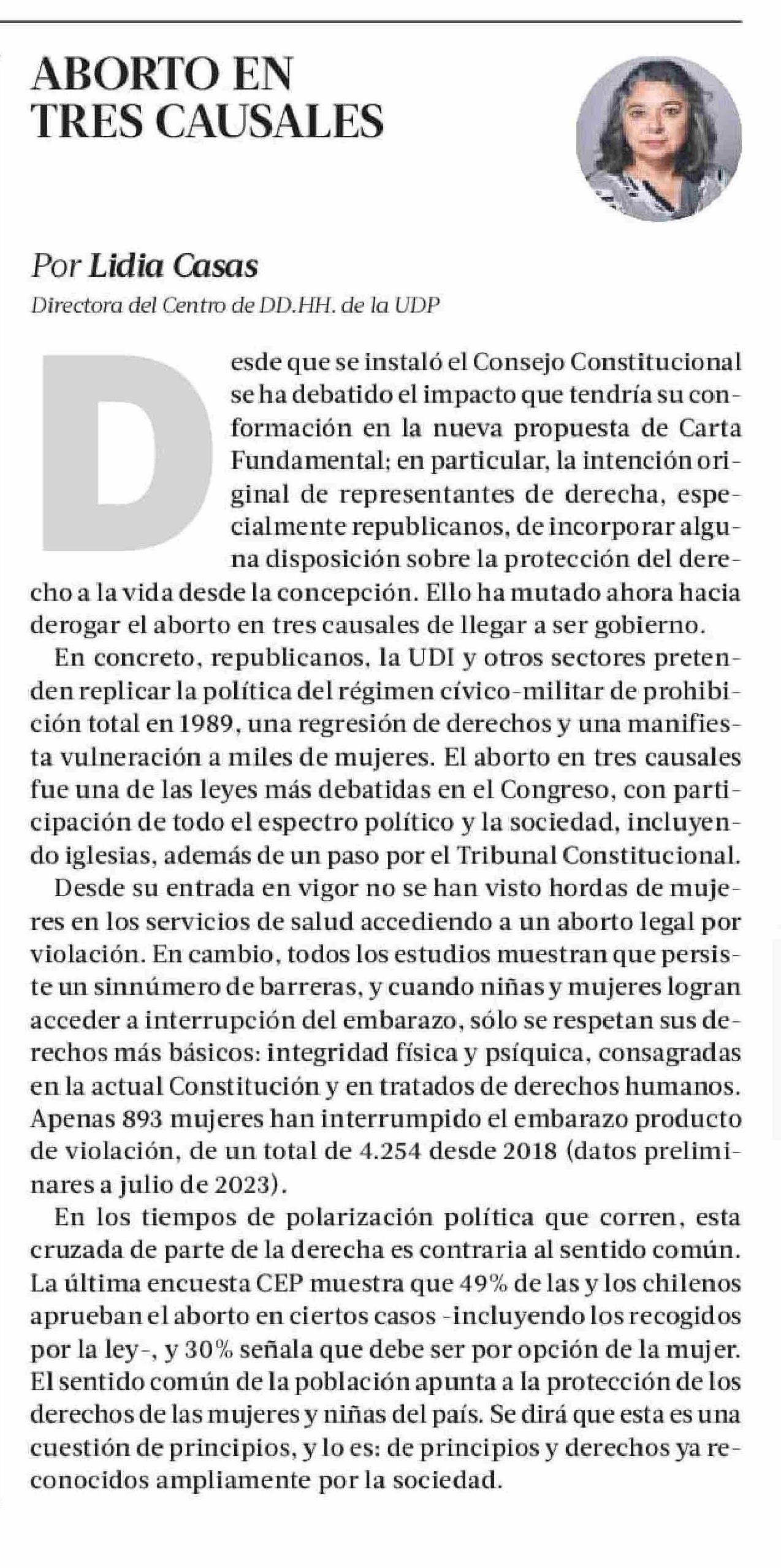 ABORTO EN TRES CAUSALES TRES CAUSALES 05-08-2023 La Tercera |