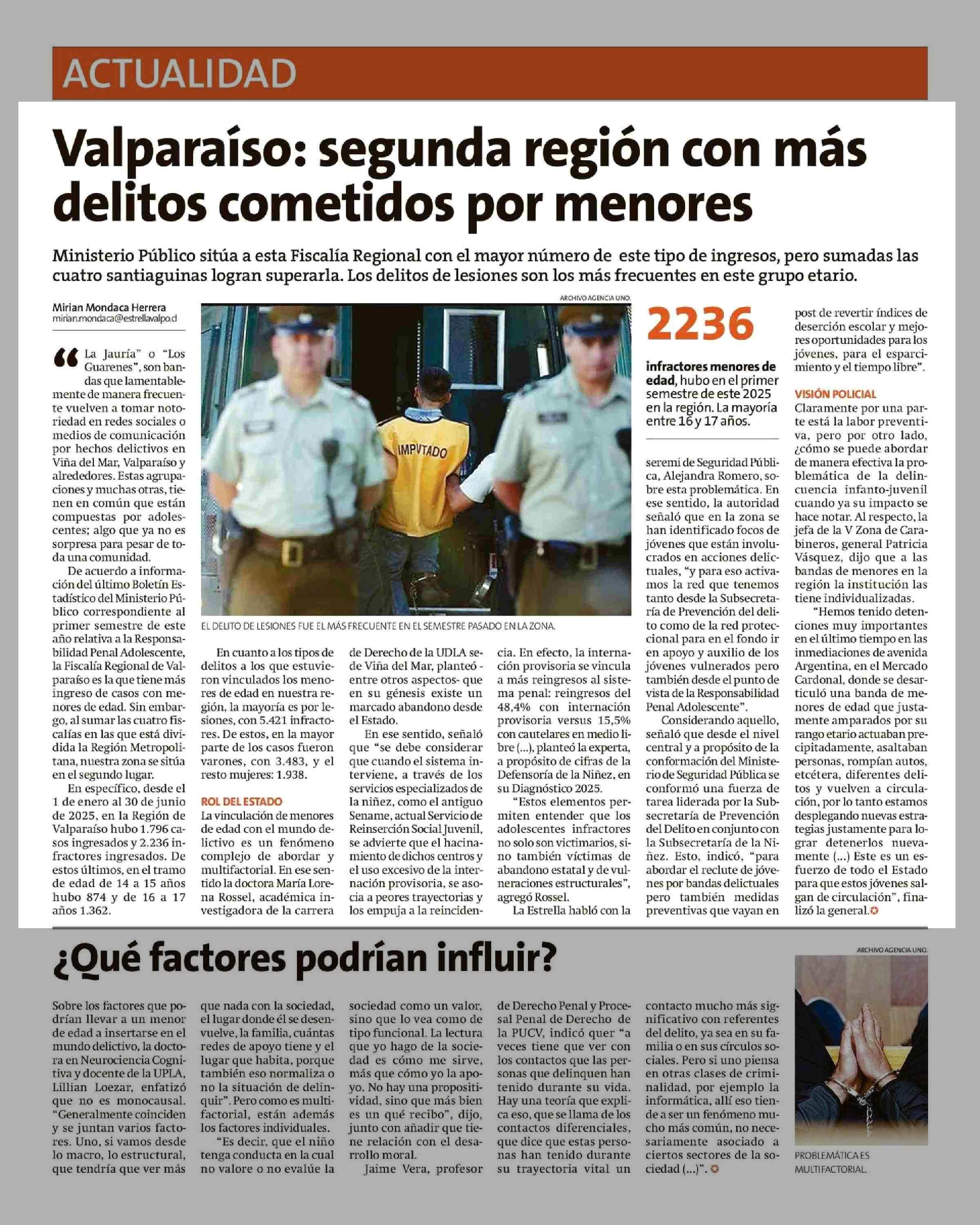 Valparaiso: segunda región con más delitos cometidos por menores 11-09-2025 La Estrella de Valparaíso |